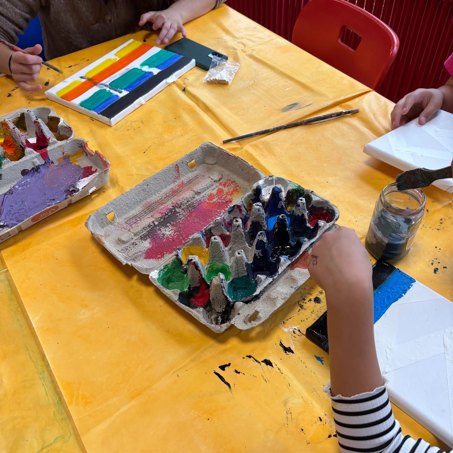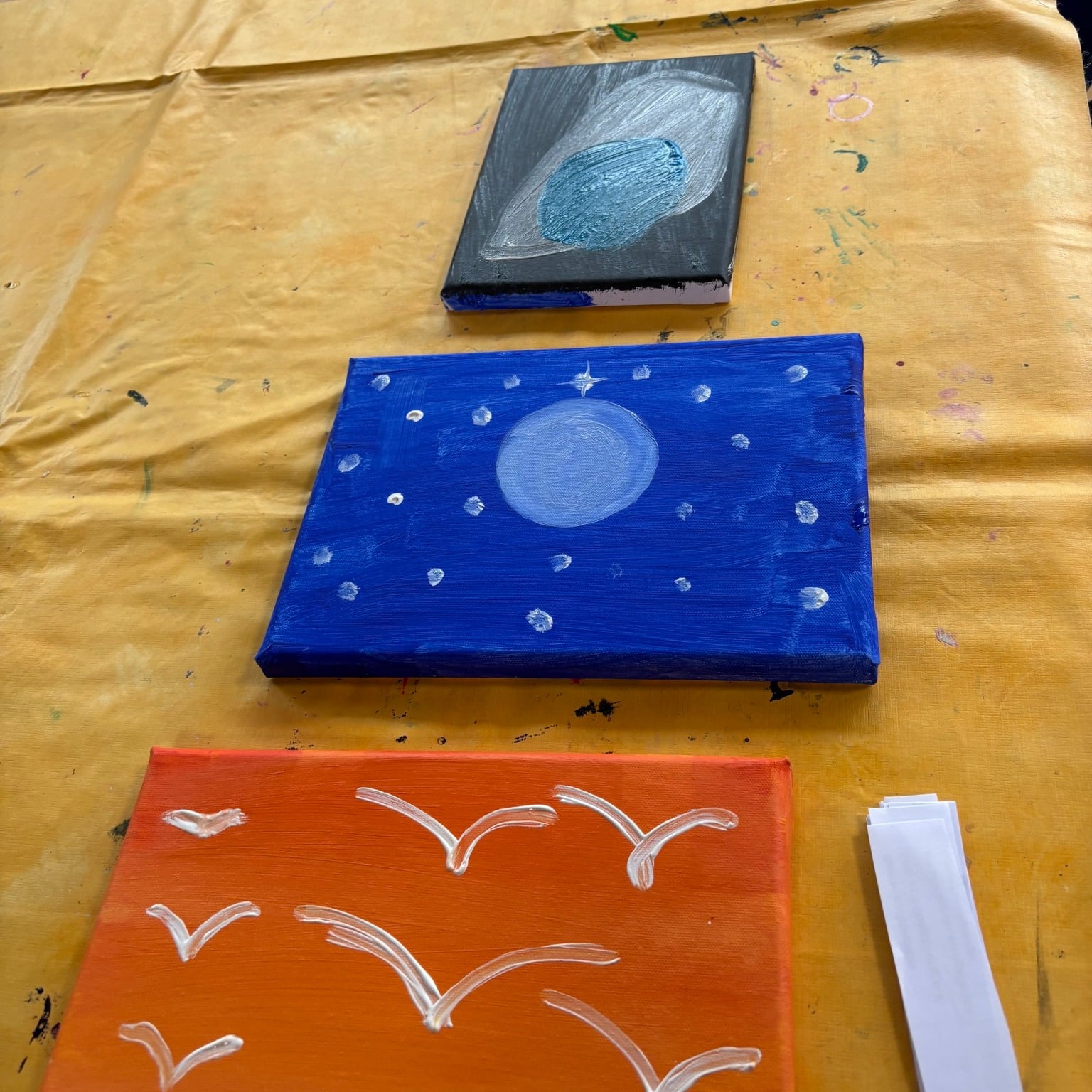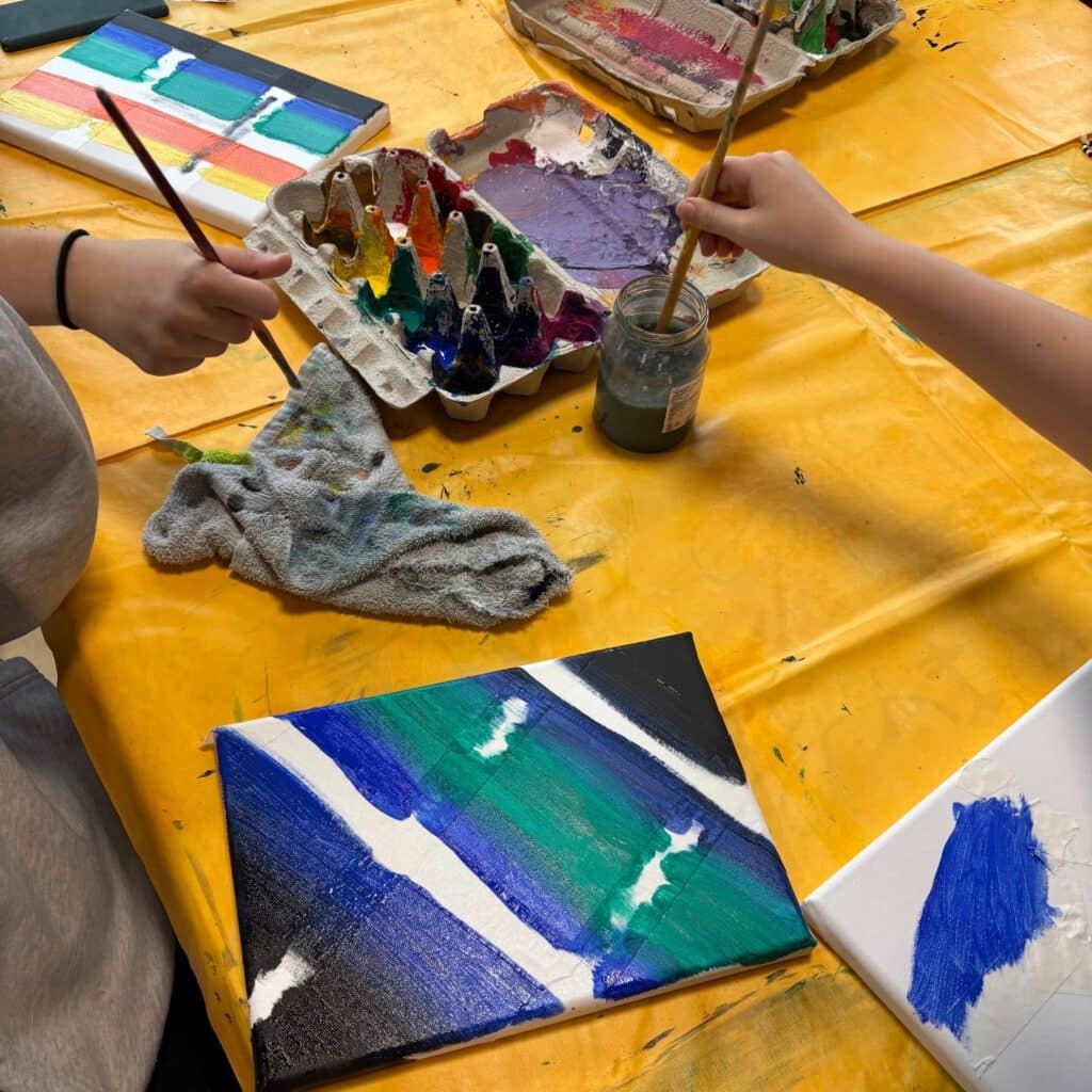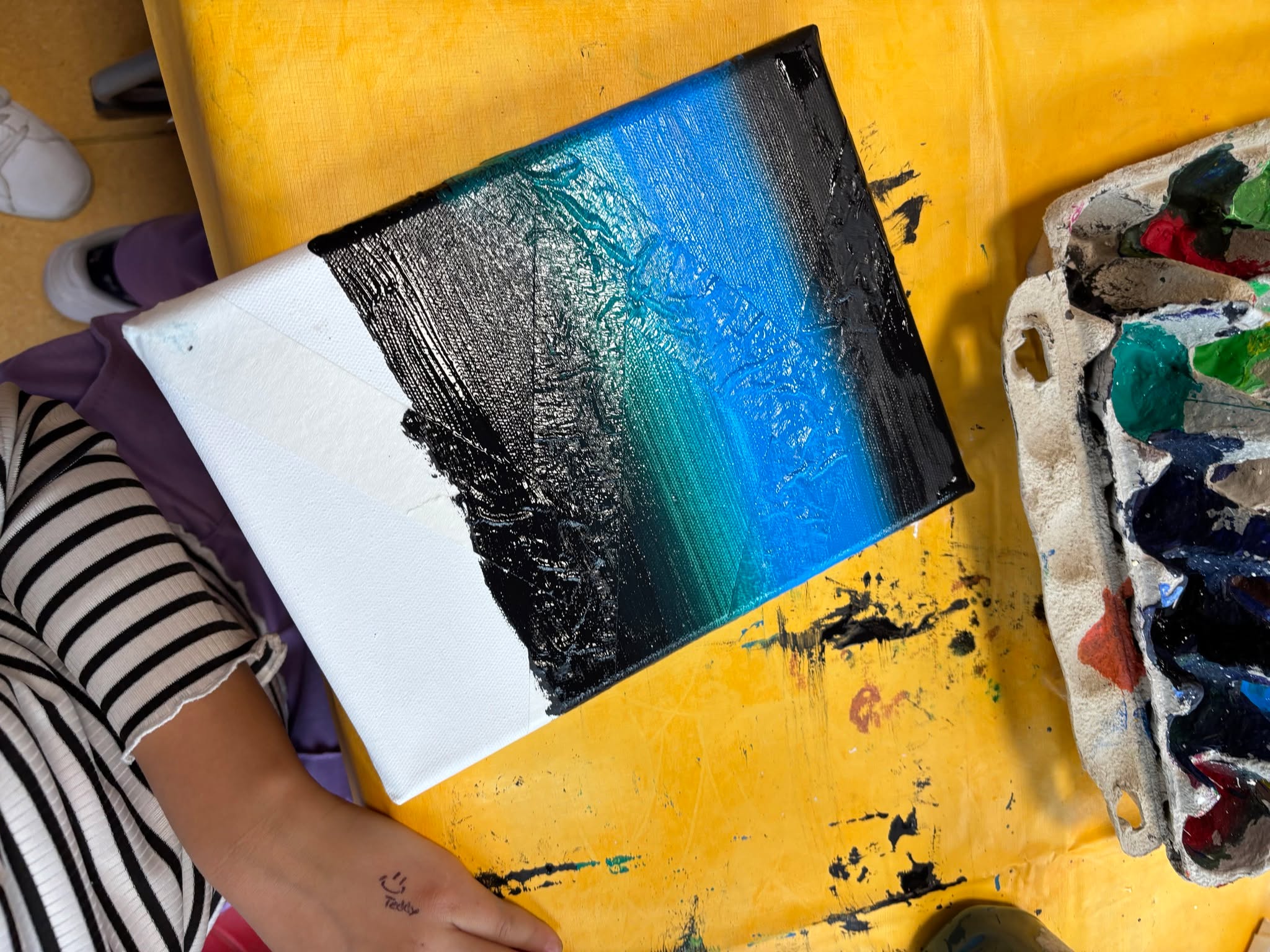 Die Teilnehmenden haben bunte Acrylbilder in verschiedenen Techniken gestaltet. Mit Tape Art kombiniert entstanden geometrische, farbenfrohe Kunstwerke, die ihre ganz eigene Stimmung zeigen. Kreativität, Freude und Experimentierfreude standen dabei im Vordergrund.