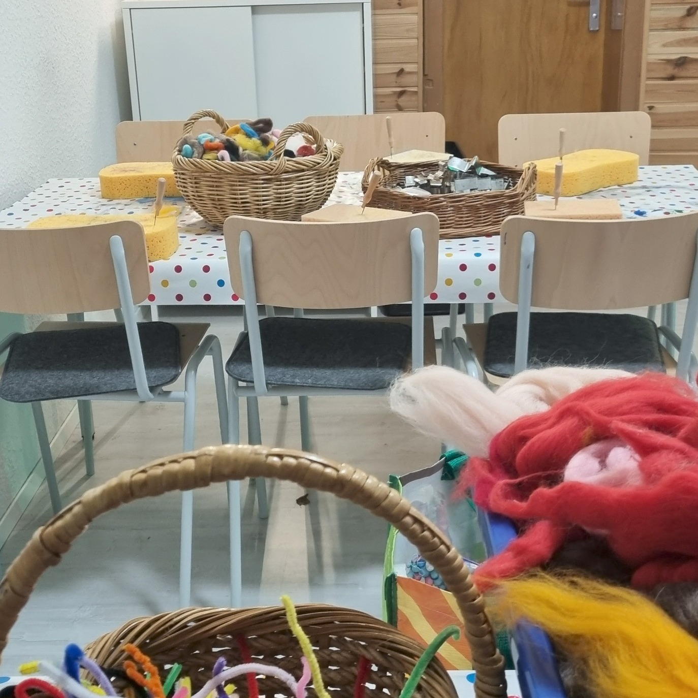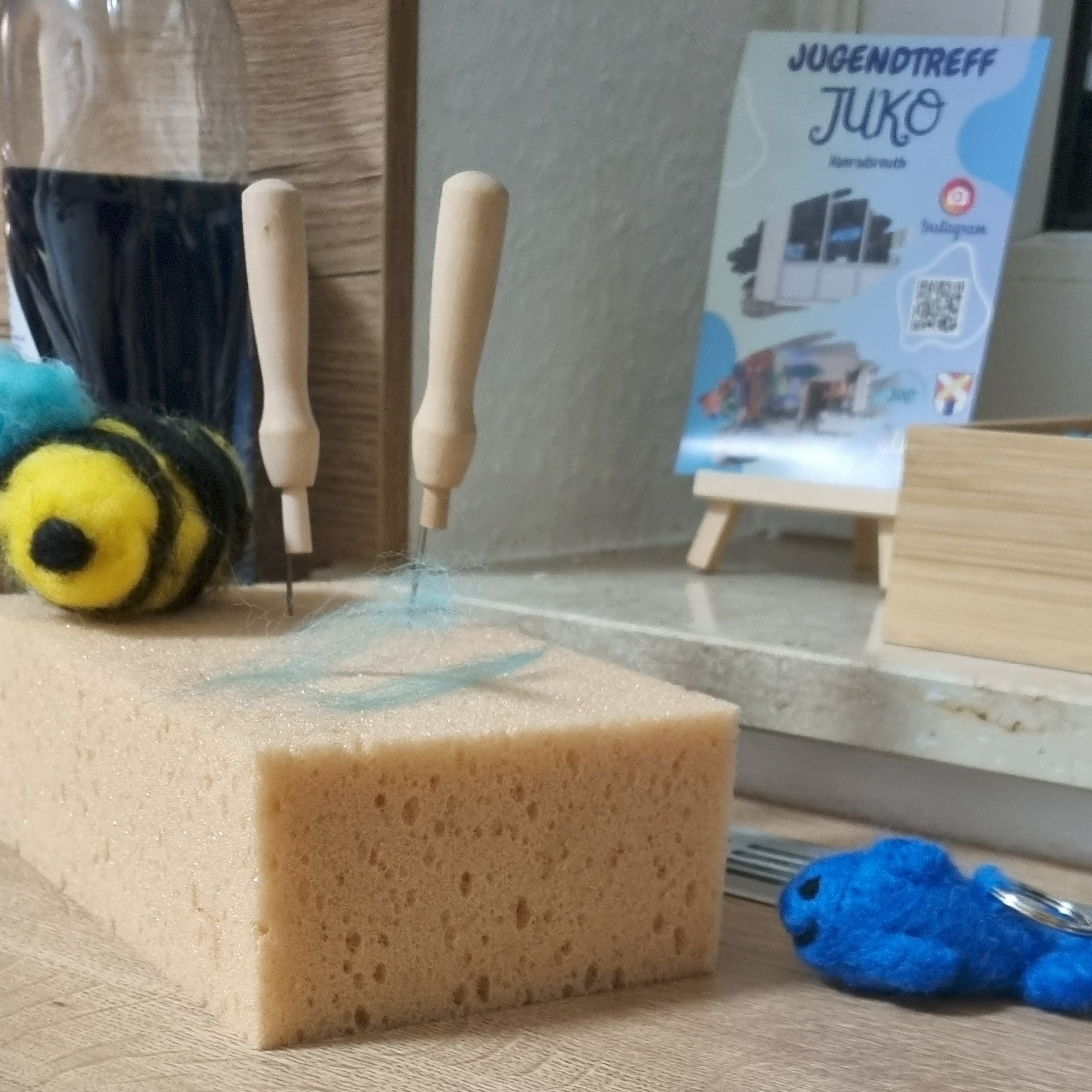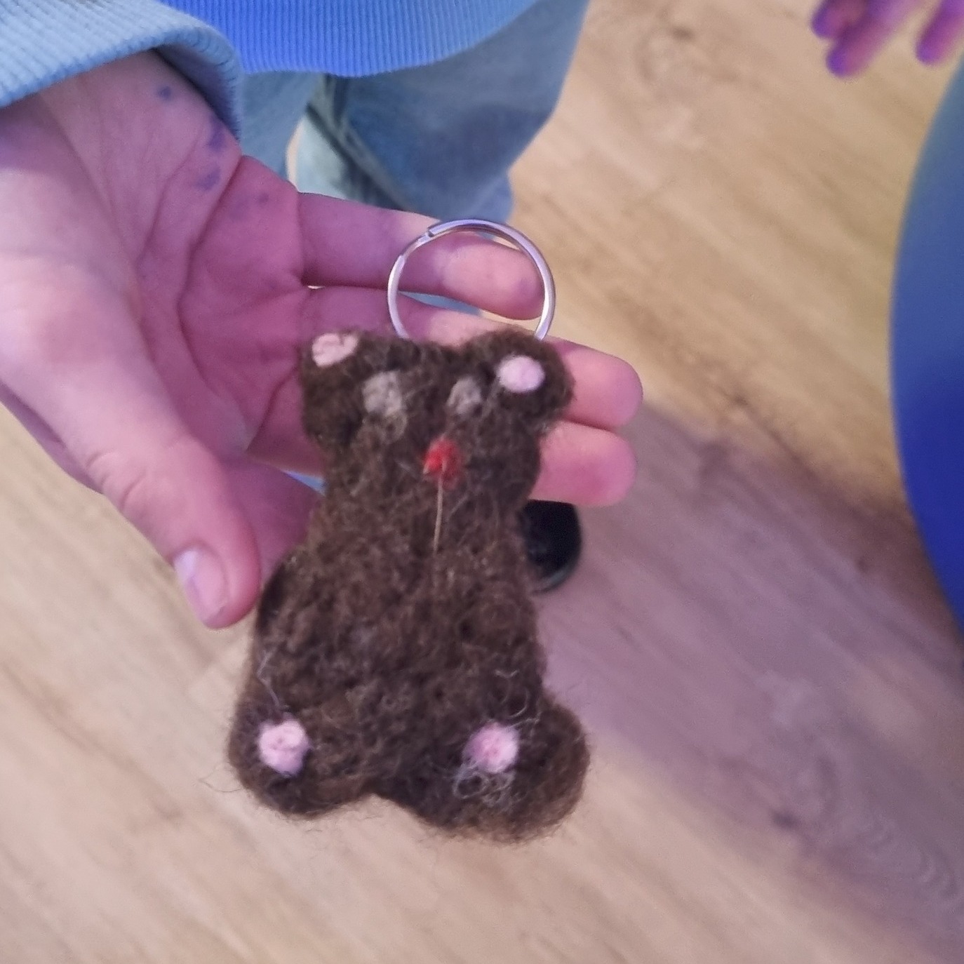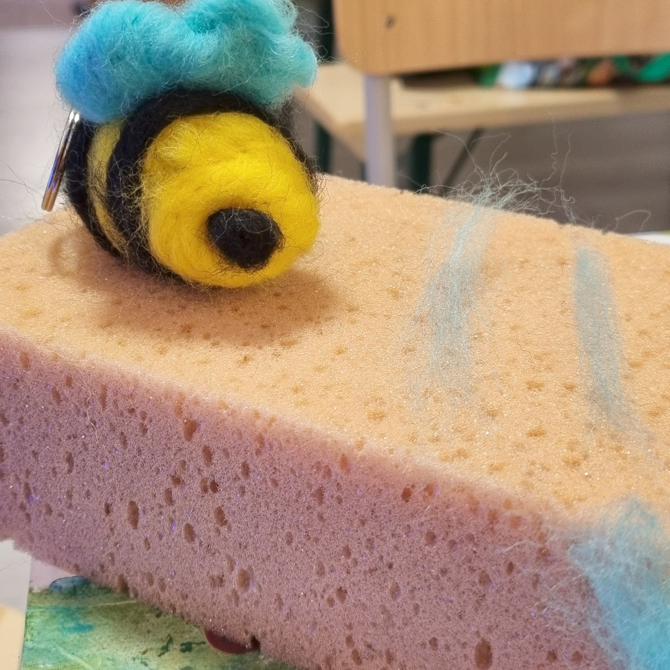 Mit Filznadeln und bunter Wolle wurde trocken gefilzt — zunächst noch etwas vorsichtig und skeptisch, dann aber mit immer mehr Neugier, Mut und Begeisterung. Schritt für Schritt entstanden kleine Figuren, Tiere und sogar Schlüsselanhänger.