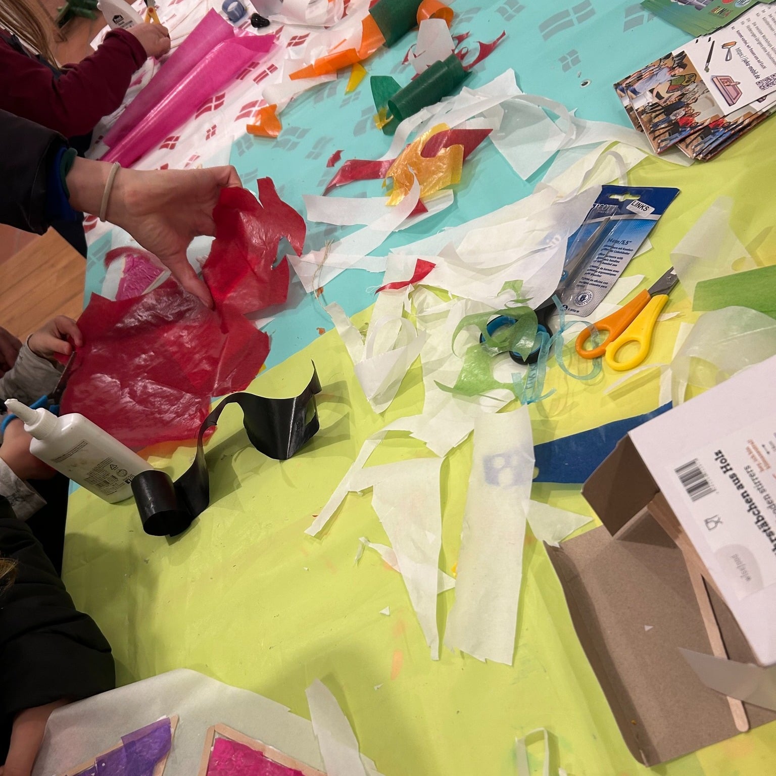 Durch das Verteilen der Tische konnte jeder in seinem eigenen Tempo kreativ sein – ob Schneiden, Kleben oder...