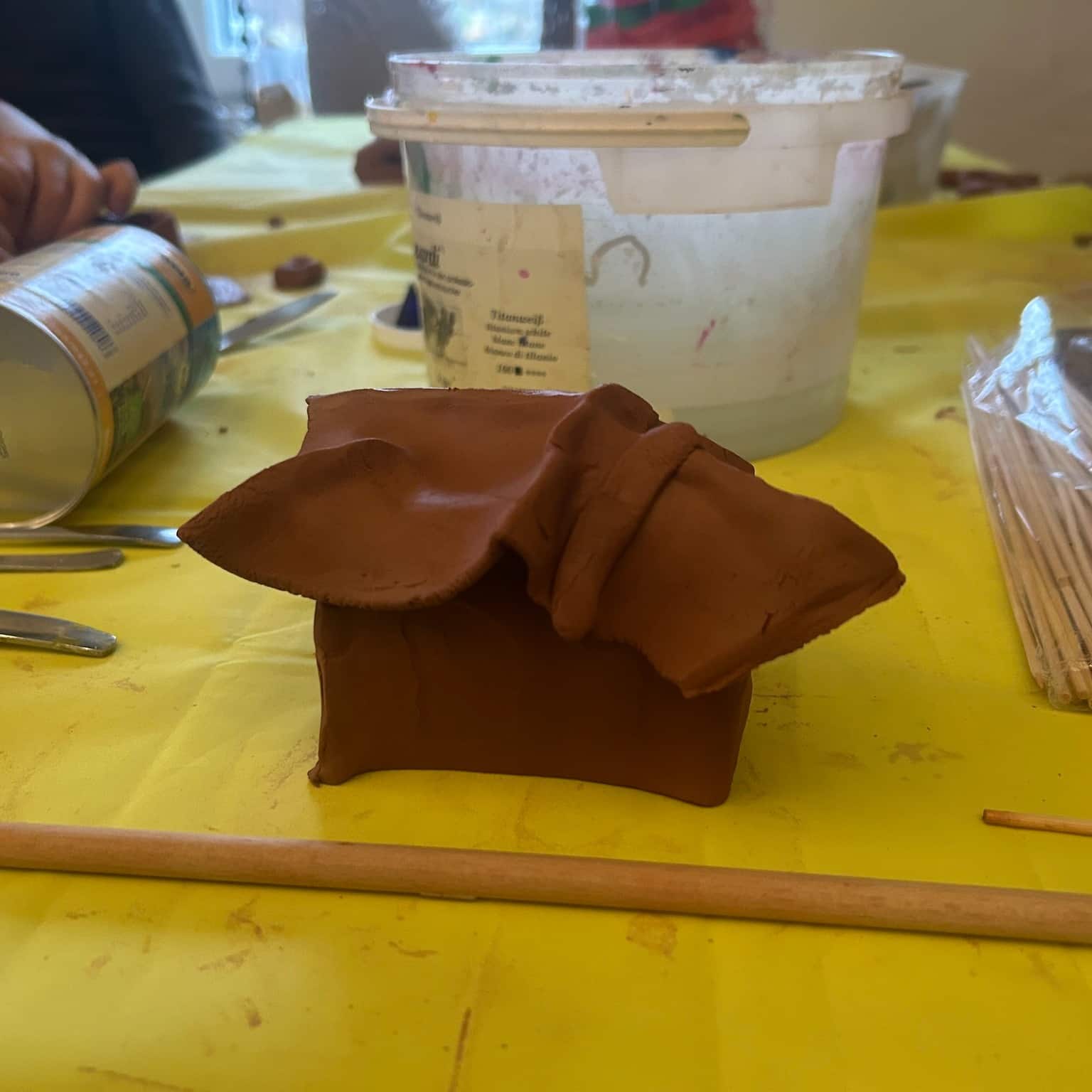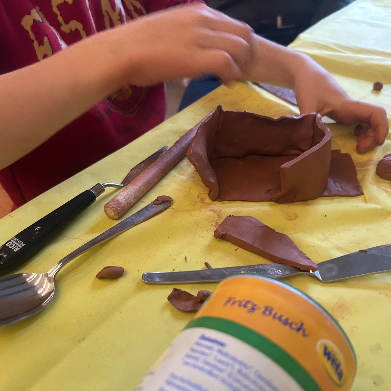 Im Erika-Fuchs-Haus wurde mit lufttrocknendem Ton gearbeitet. Ziel war es, zu entdecken, was in einem Tonklumpen steckt: Formen...