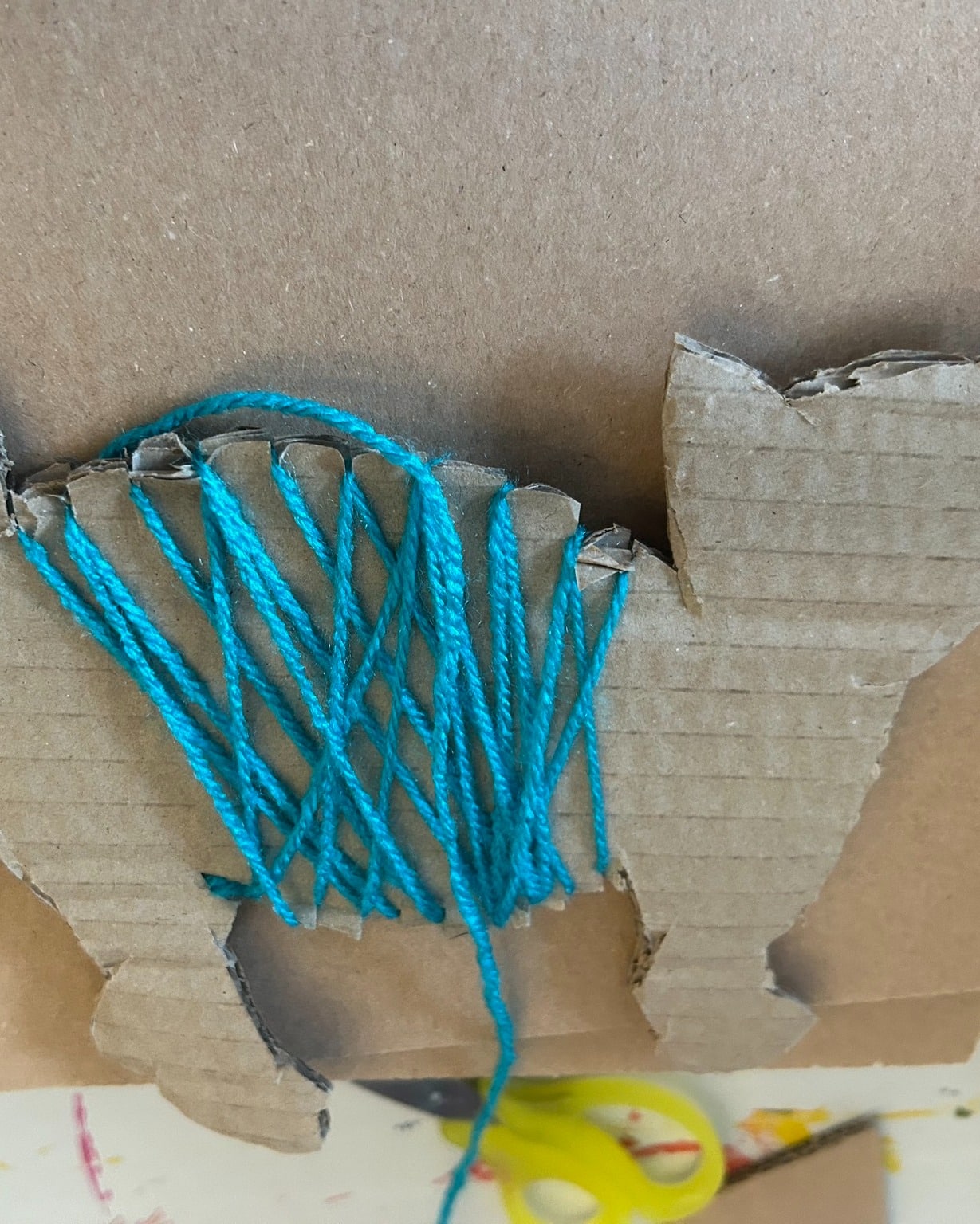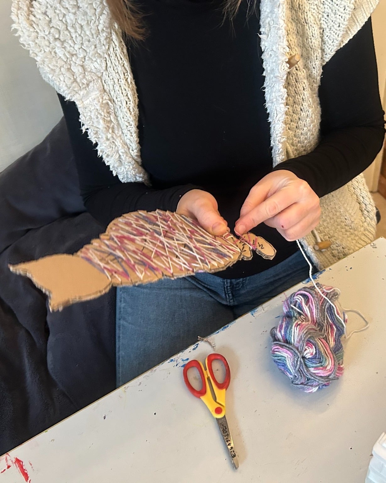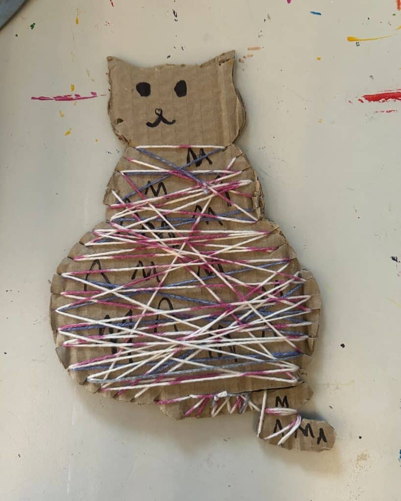 Mit Pappe als Grundlage und ganz viel bunter Wolle entstanden fantasievolle Fische und Katzen. Die Wolle wurde gewickelt, gespannt, gekreuzt und kombiniert – jede Arbeit entwickelte dabei ihren ganz eigenen Charakter.
