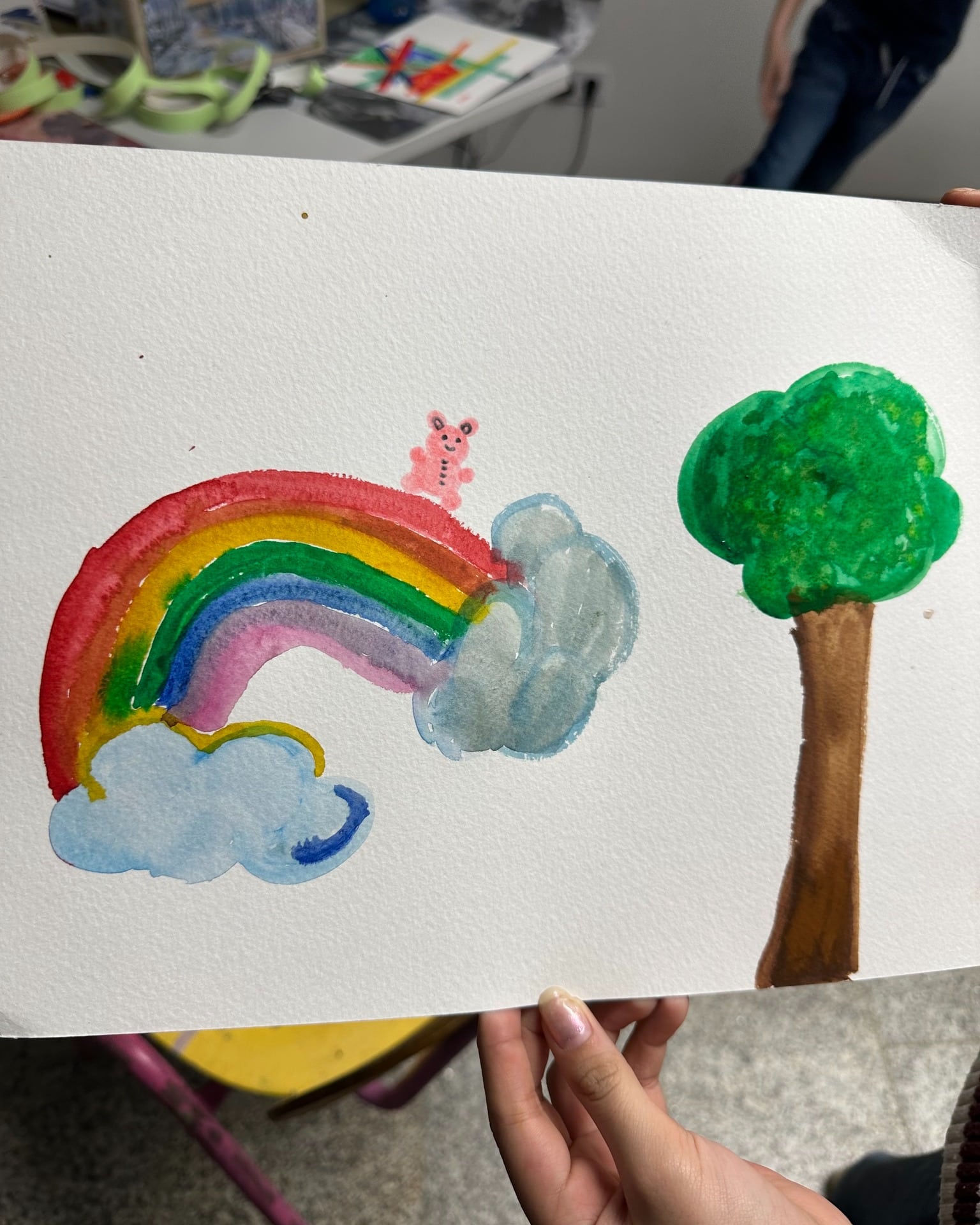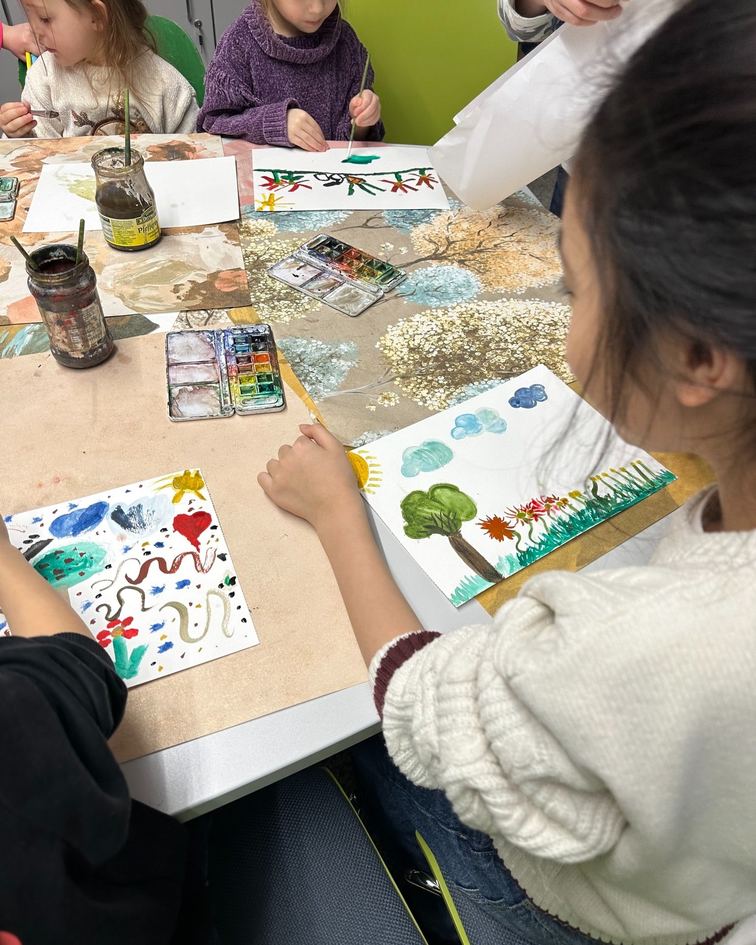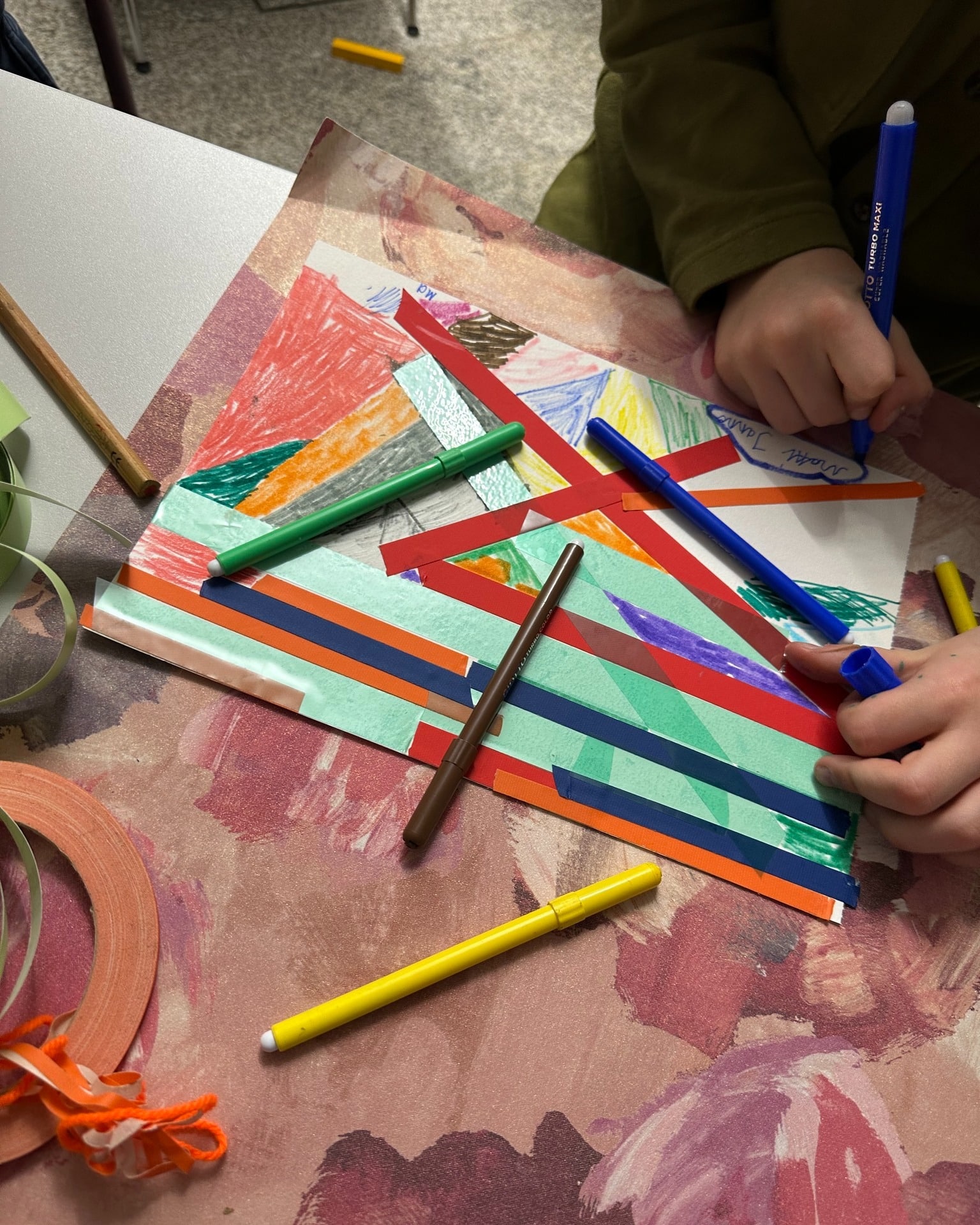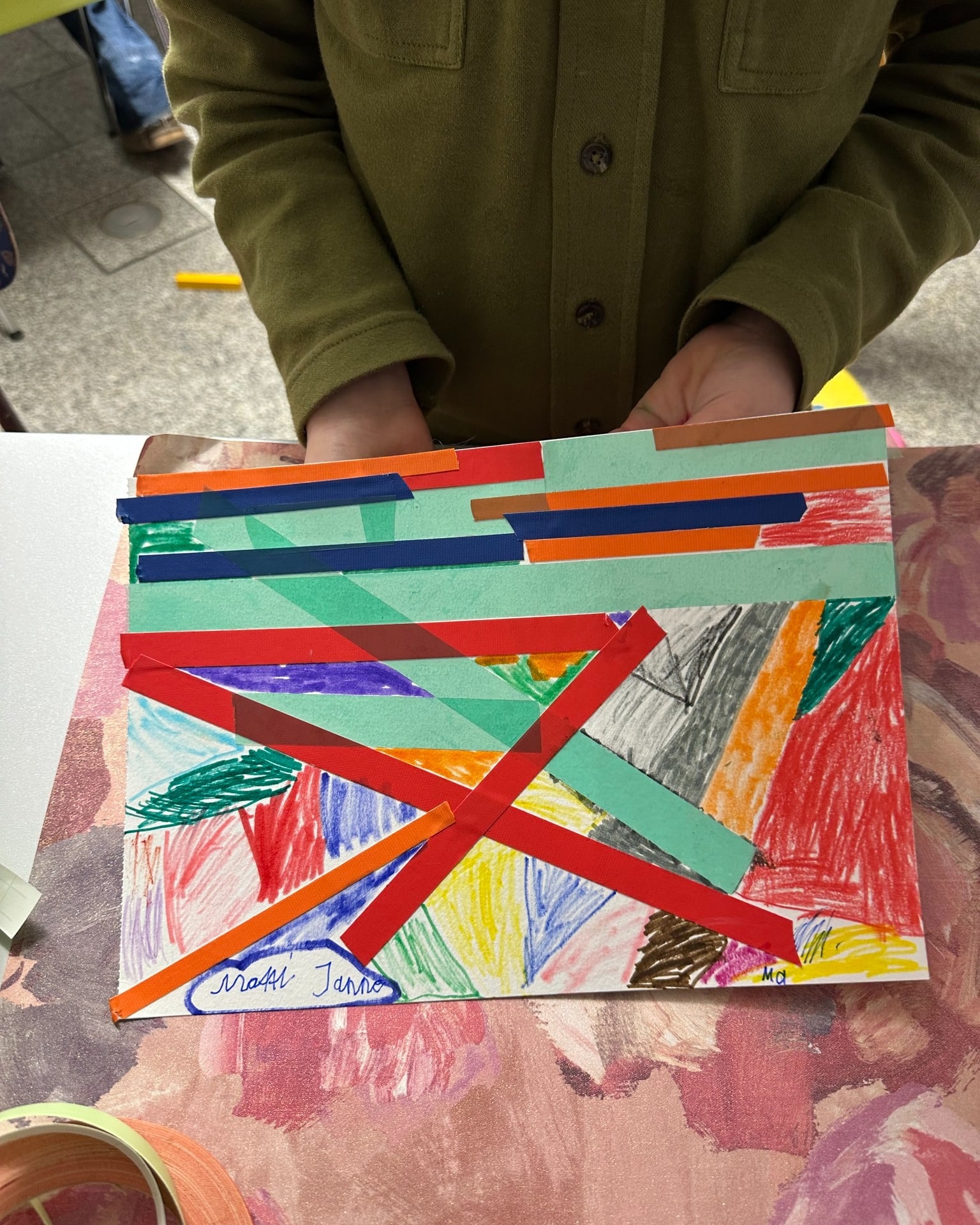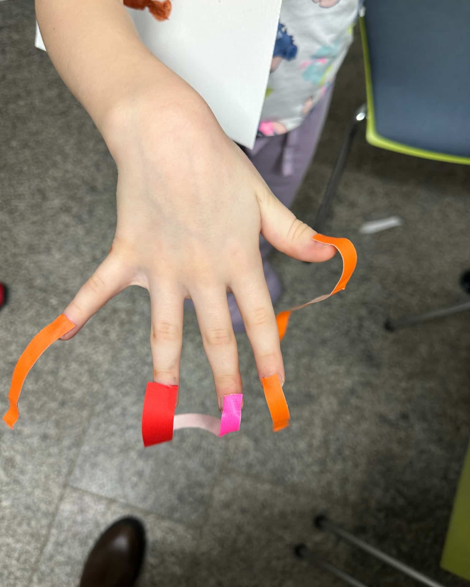 Es entstanden Fantasiebilder und Tiere mit Aquarellfarben, kombiniert mit Tape-Art. Linien wurden geklebt, Flächen gestaltet, Farben ausprobiert. Manche Kinder gingen noch einen Schritt weiter – und machten sich kurzerhand Tapefingernägel. Kreativität kennt eben keine Grenzen.