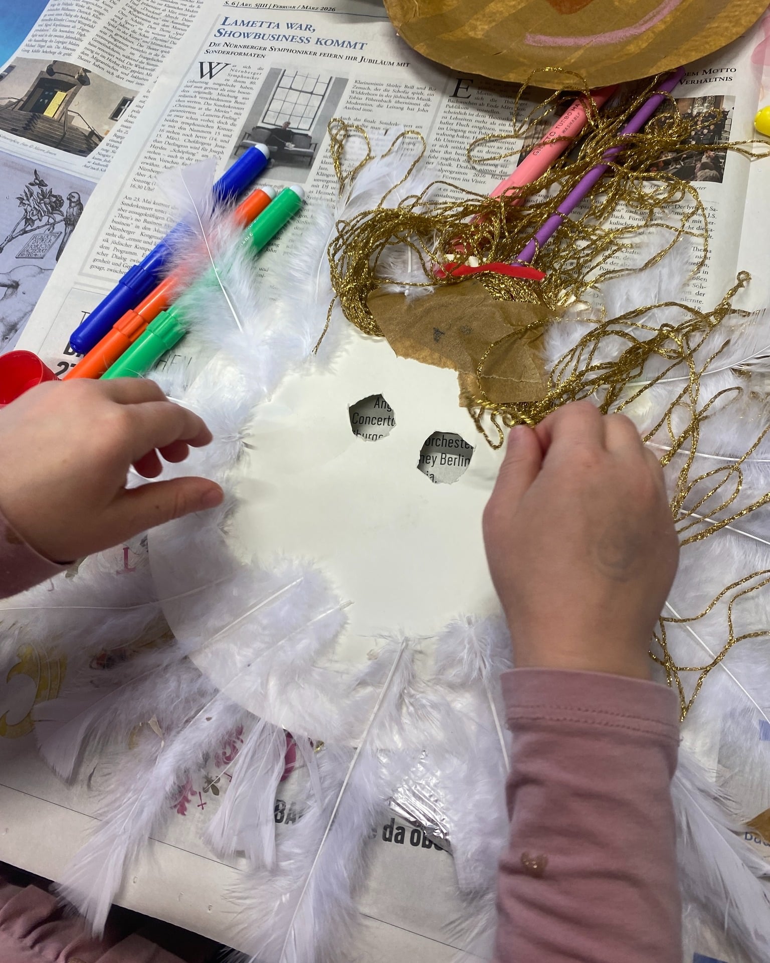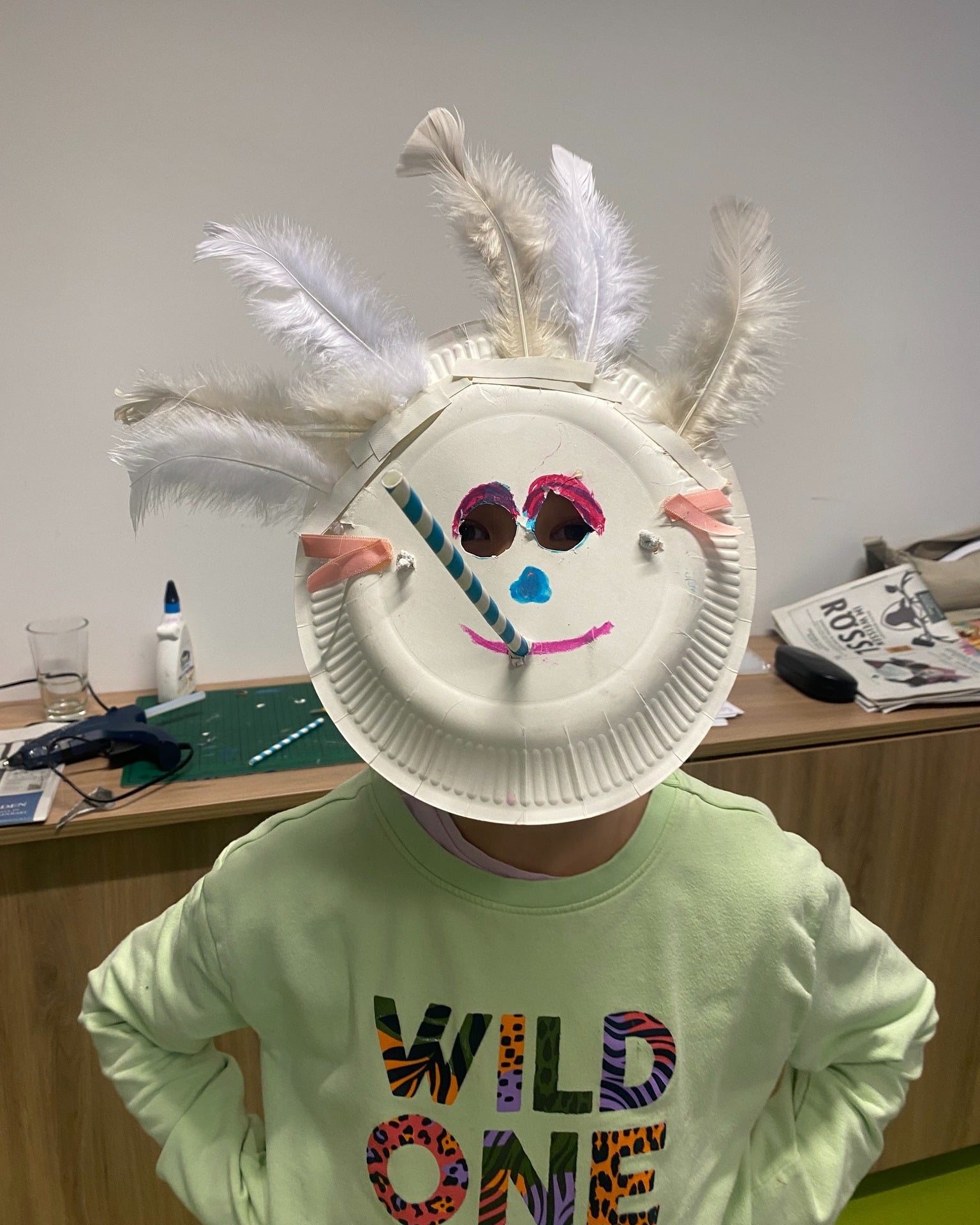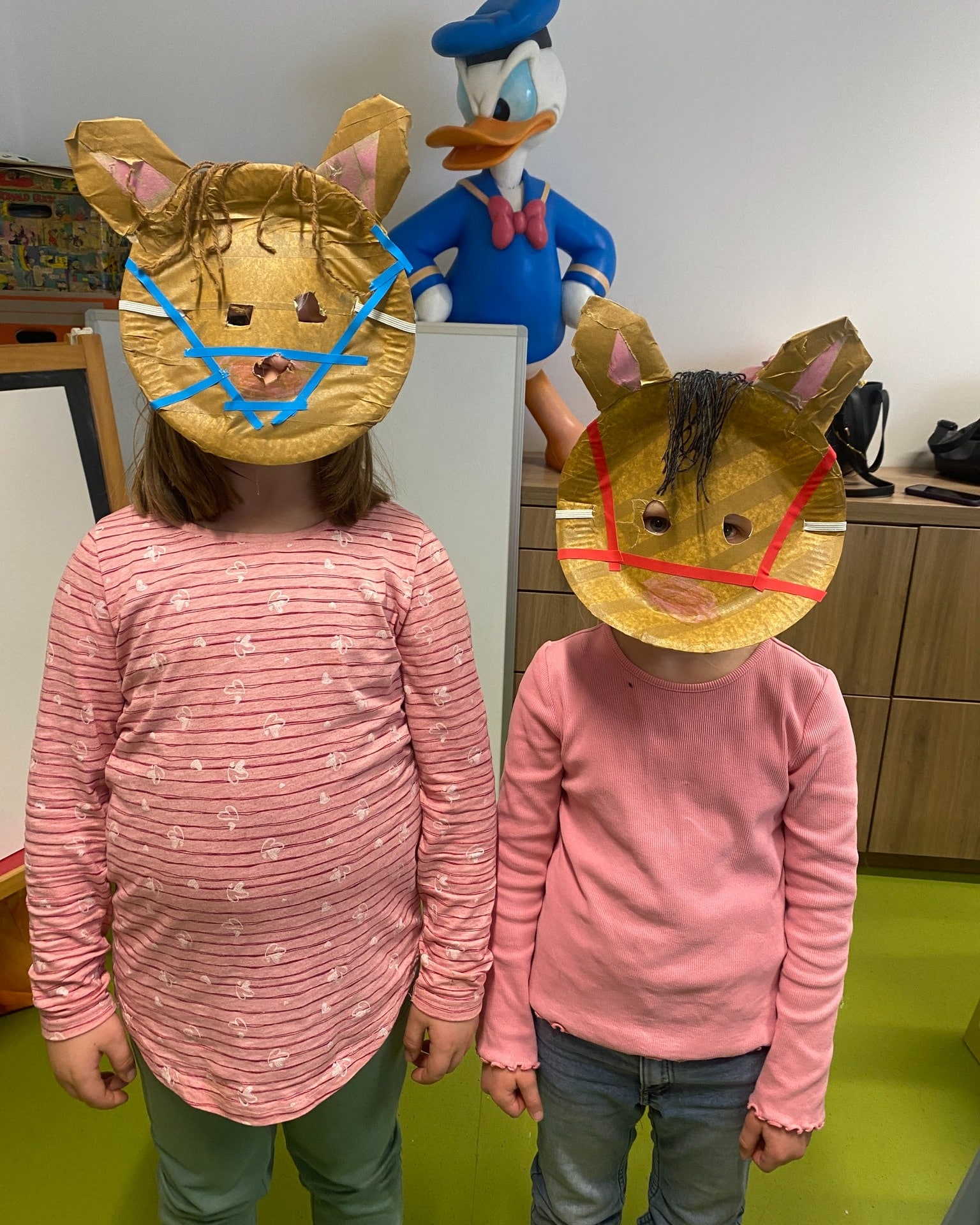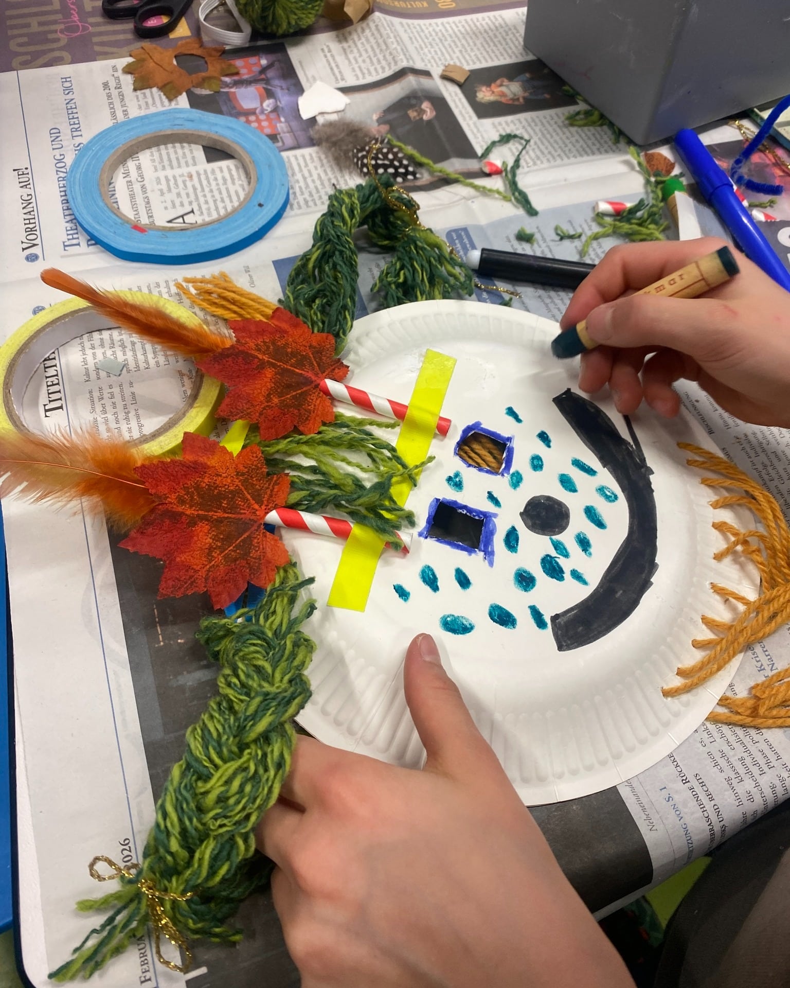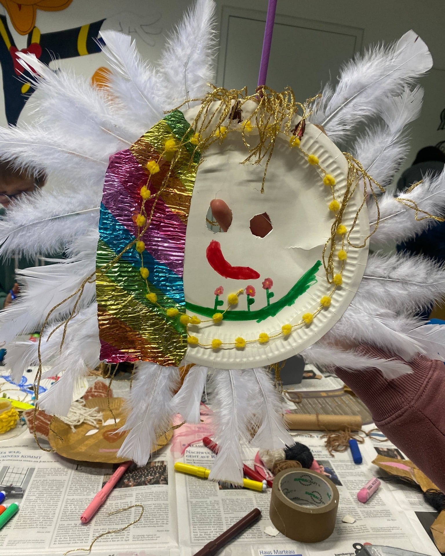 Im Erika-Fuchs-Haus wurden aus unterschiedlichsten Materialien fantasievolle Masken gestaltet. Die meisten Kinder nutzten einen runden Pappteller als Grundform – und dann ging das Experimentieren los.