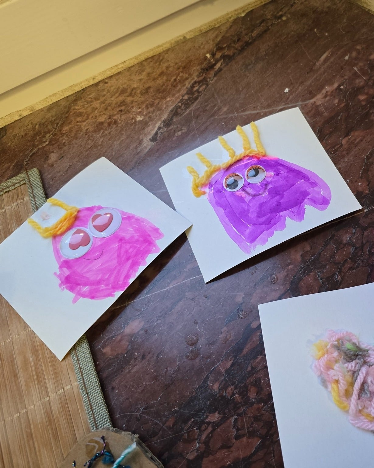 Teilweise wurden auch Herzen aus Kleber auf Papier vorgezeichnet und mit Wollabschnitten ausgelegt – eine andere Technik, aber genauso kreativ. Und ganz nebenbei entstanden parallel beeindruckende Bauklotzkonstruktionen.