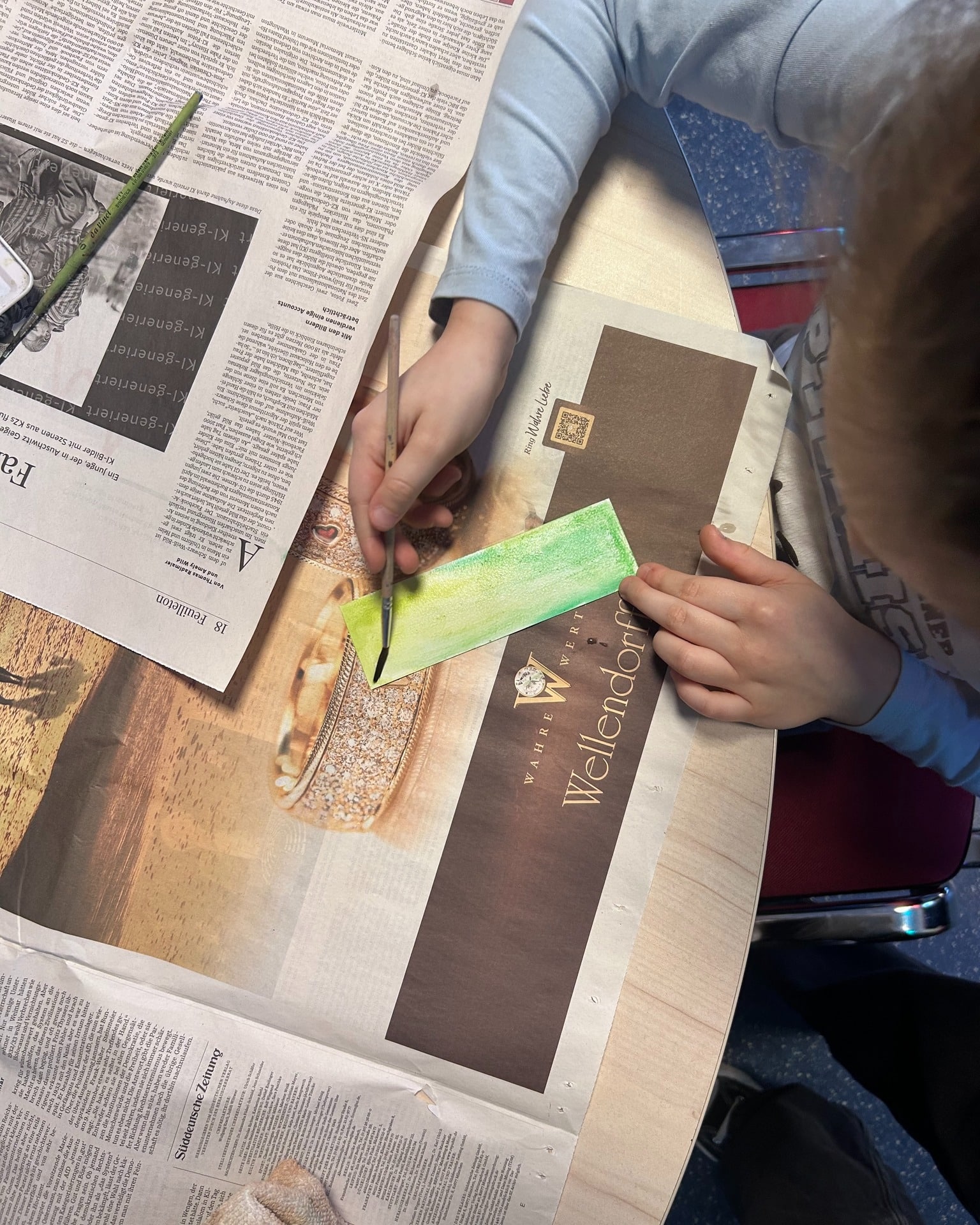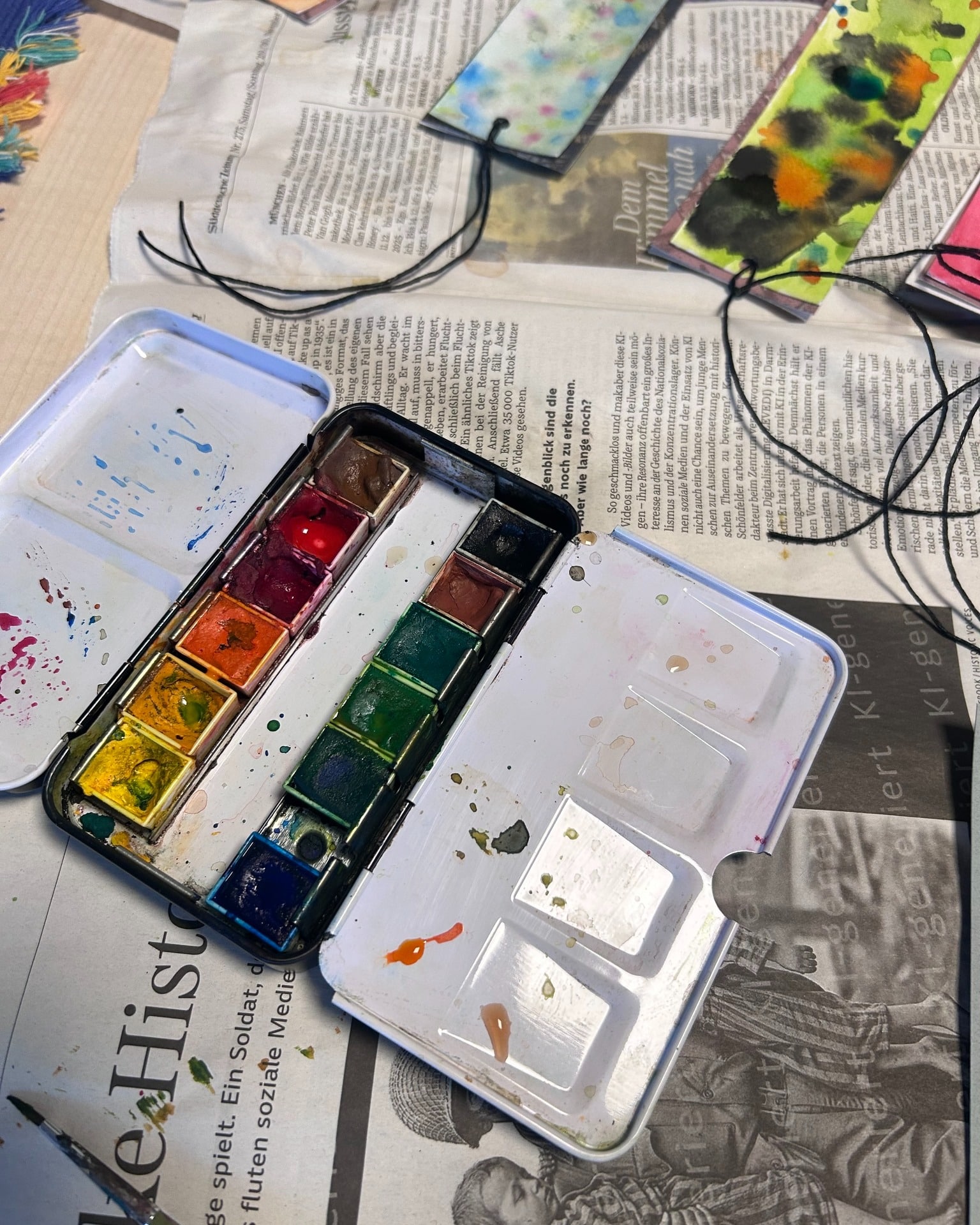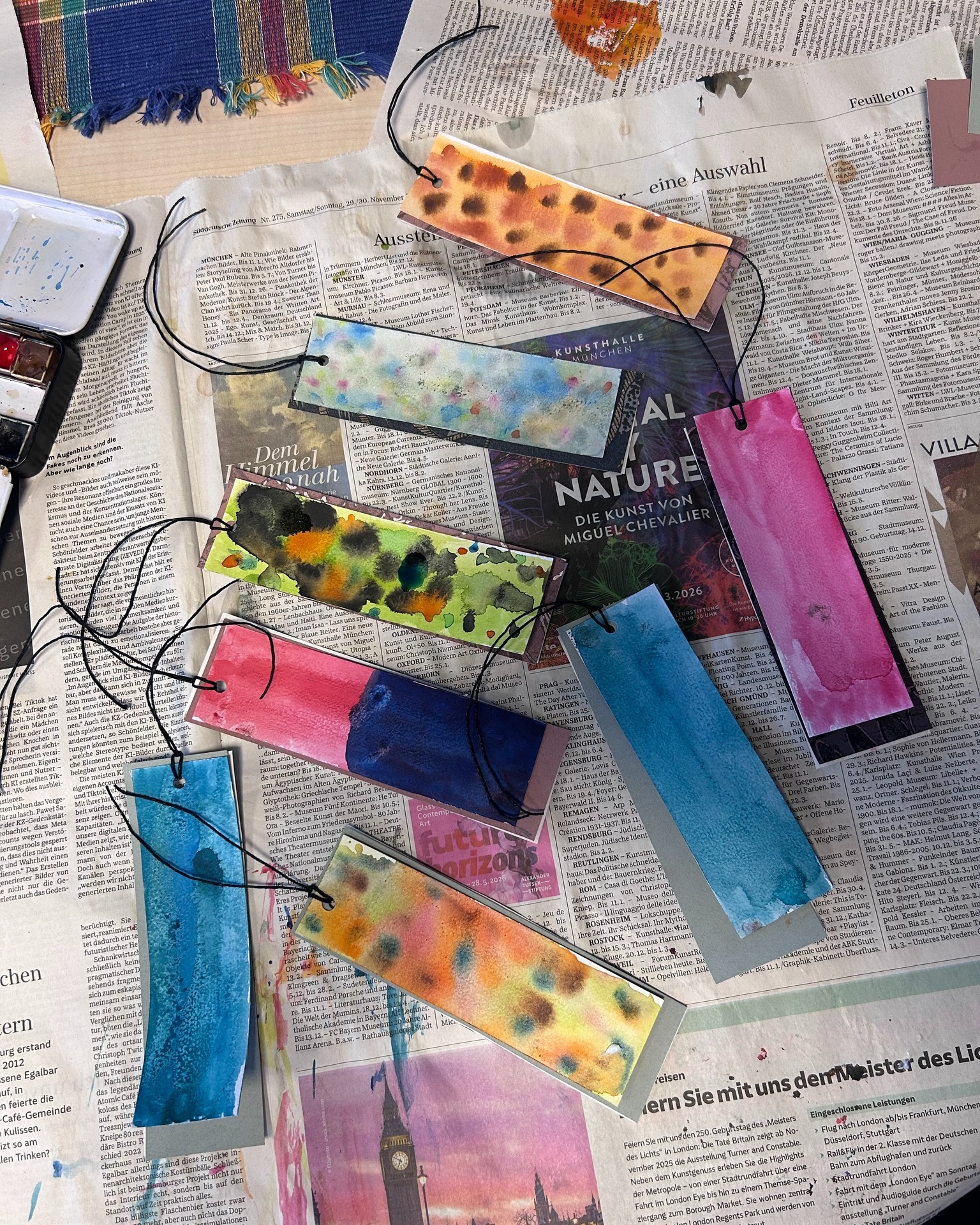 Auch im Jugendtreff Oberkotzau wurde es kreativ – und richtig farbenfroh! Gemeinsam haben wir Lesezeichen in Aquarelltechnik gestaltet, mit Schnur versehen, Perlen aufgefädelt und mit Tapetenresten gedoppelt.