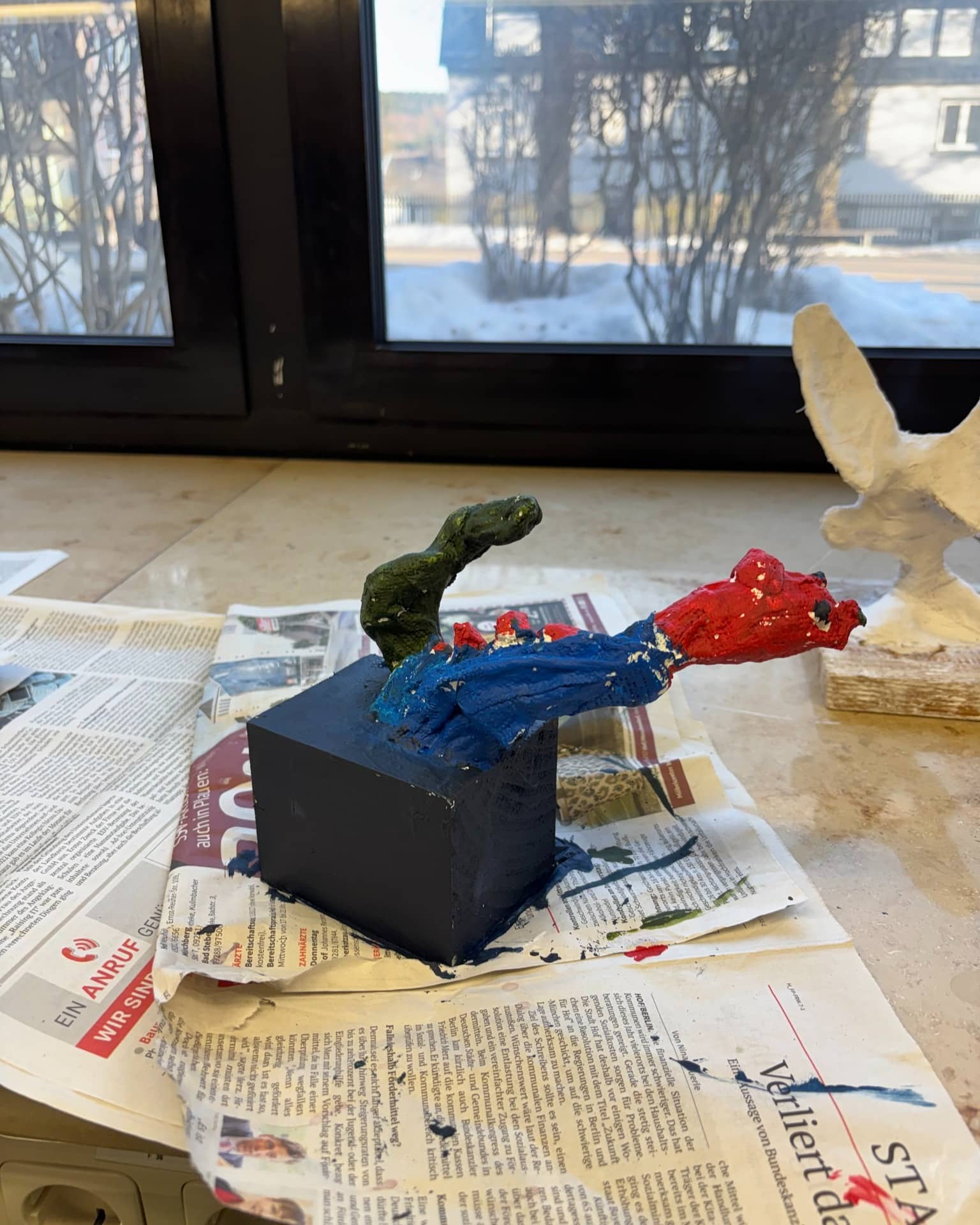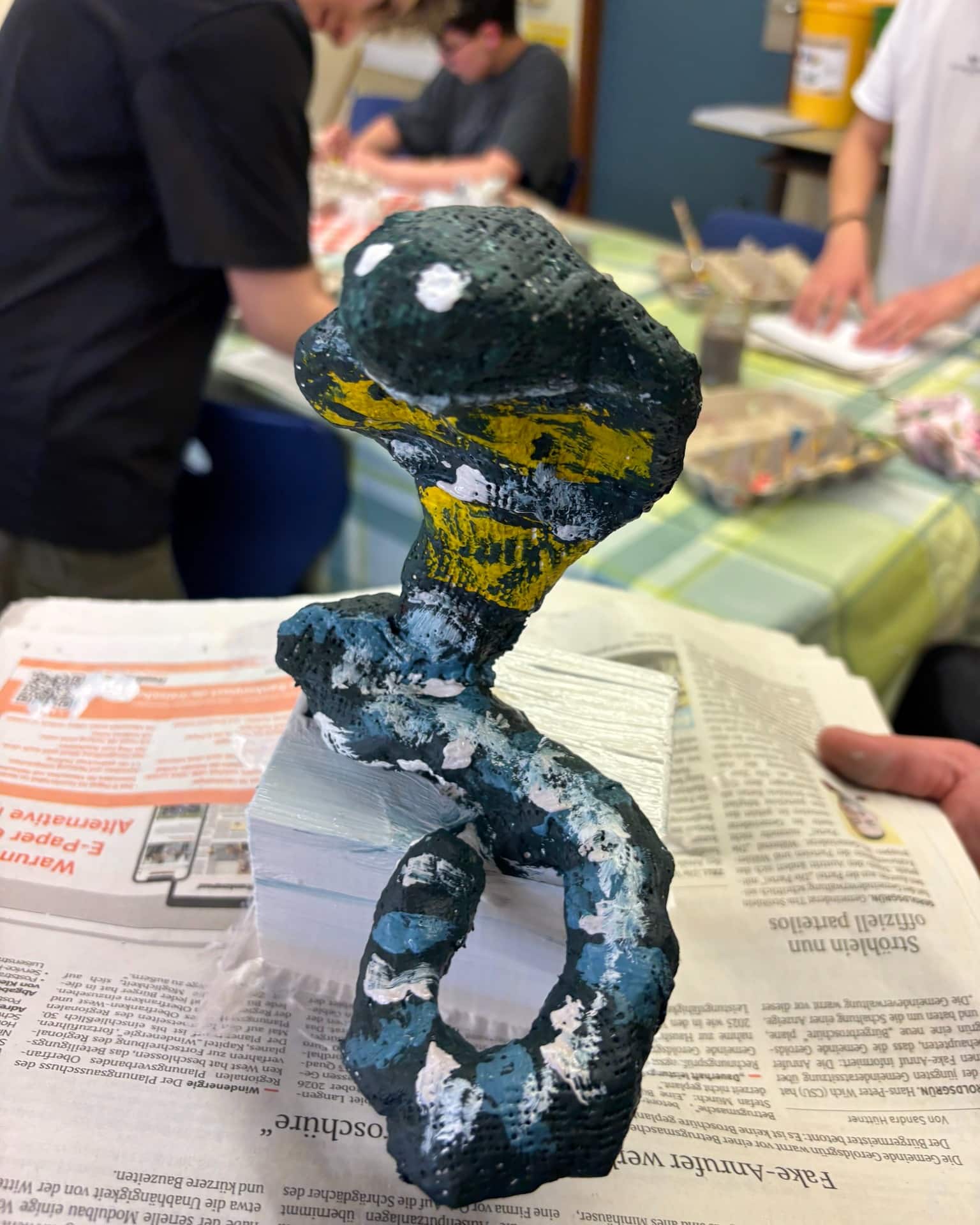 In der Mittelschule Naila wurden die zuvor modellierten Figuren mit Acrylfarben bunt gestaltet und anschließend mit Gips ummantelt, sodass sie eine stabile und spannende Oberfläche erhielten.