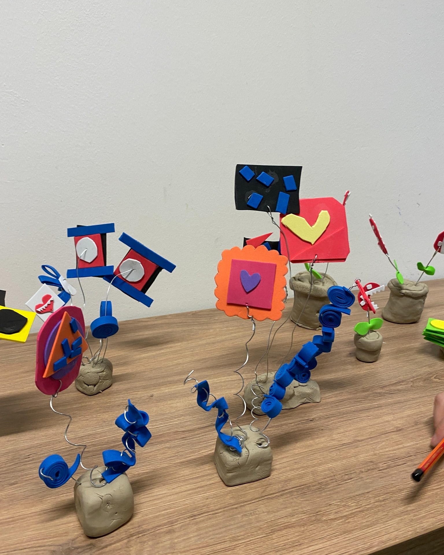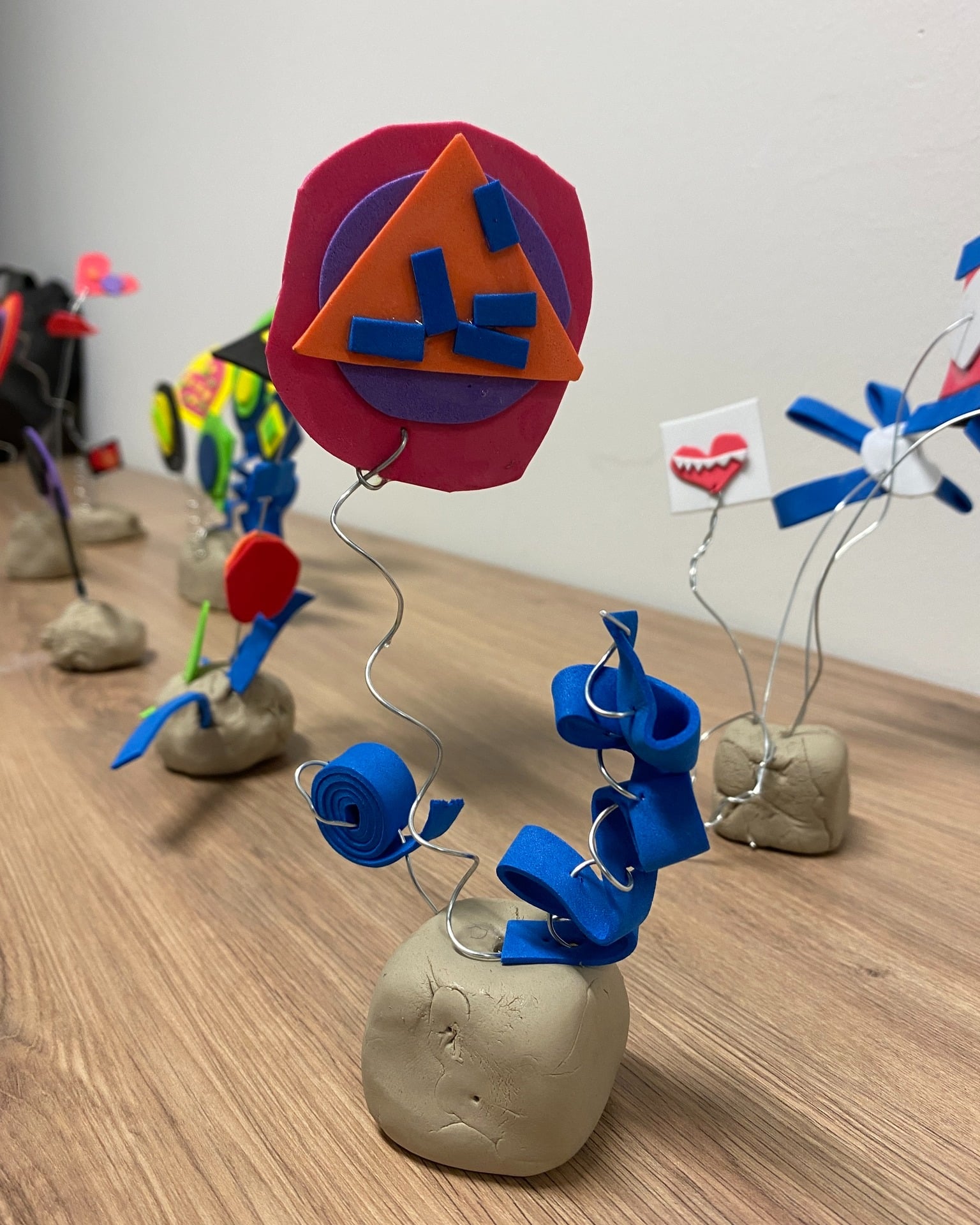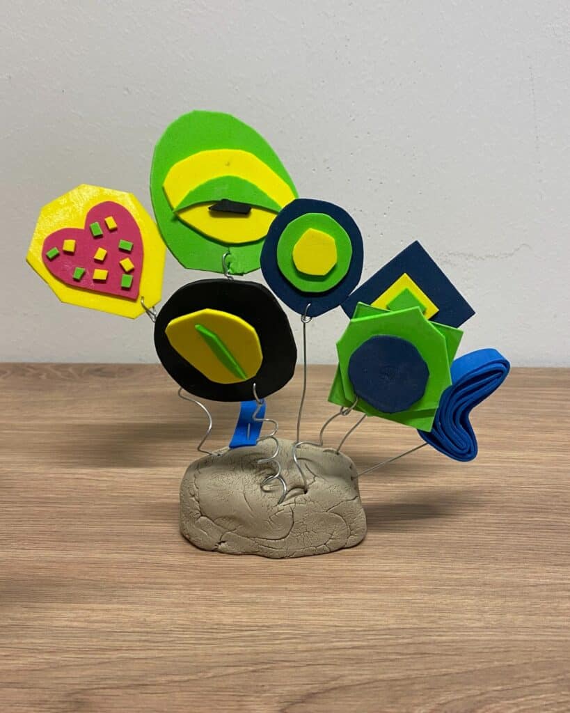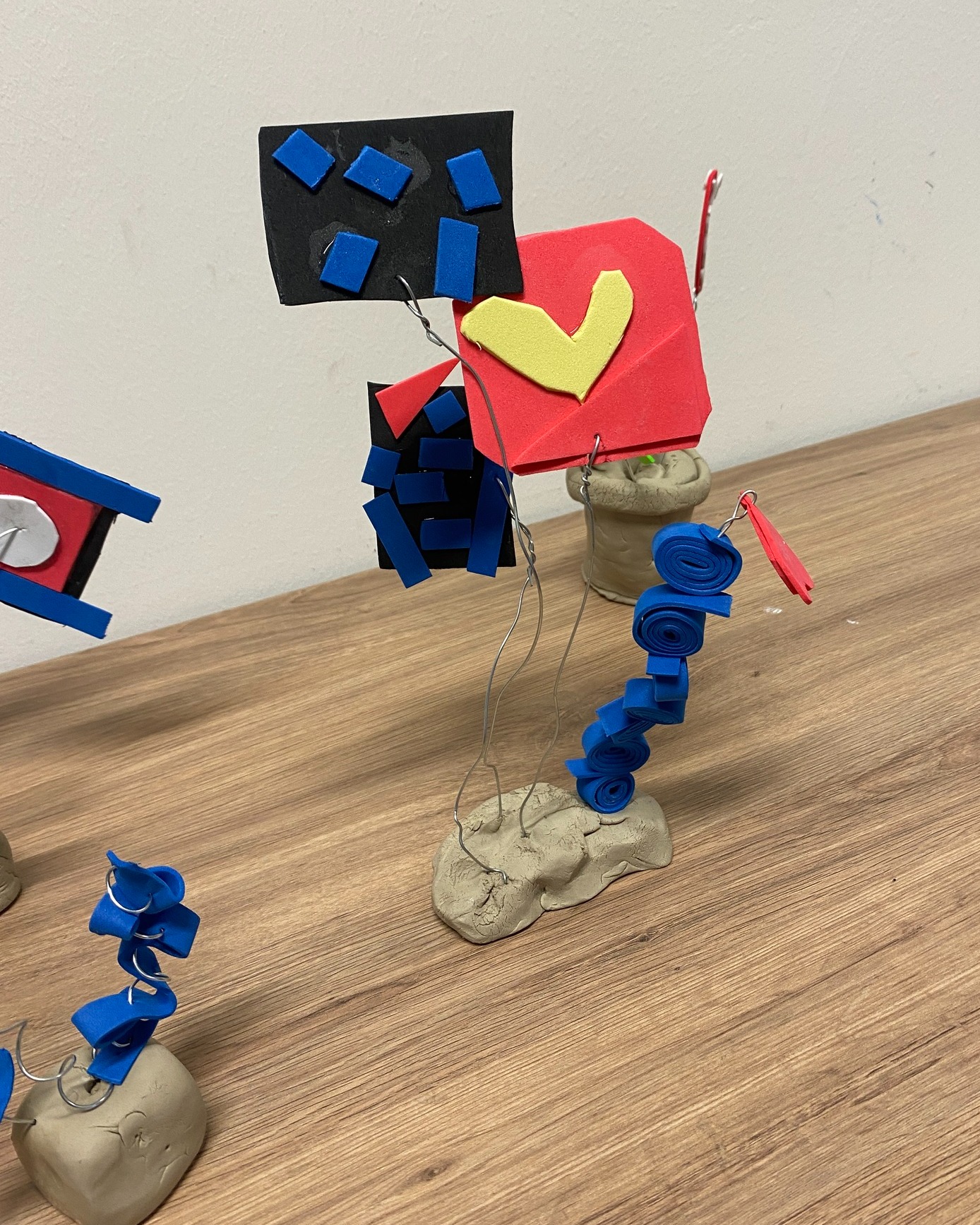 Im Erika Fuchs Haus haben die Kinder kleine Skulpturen aus Draht und Moosgummi gestaltet. Dabei kombinierten sie verschiedene Materialien, probierten Formen aus und entwickelten originelle Modelle.