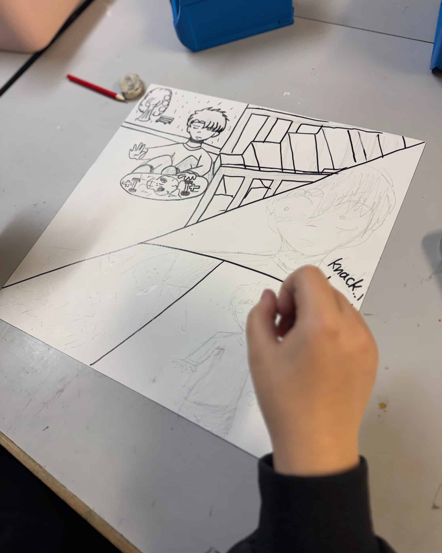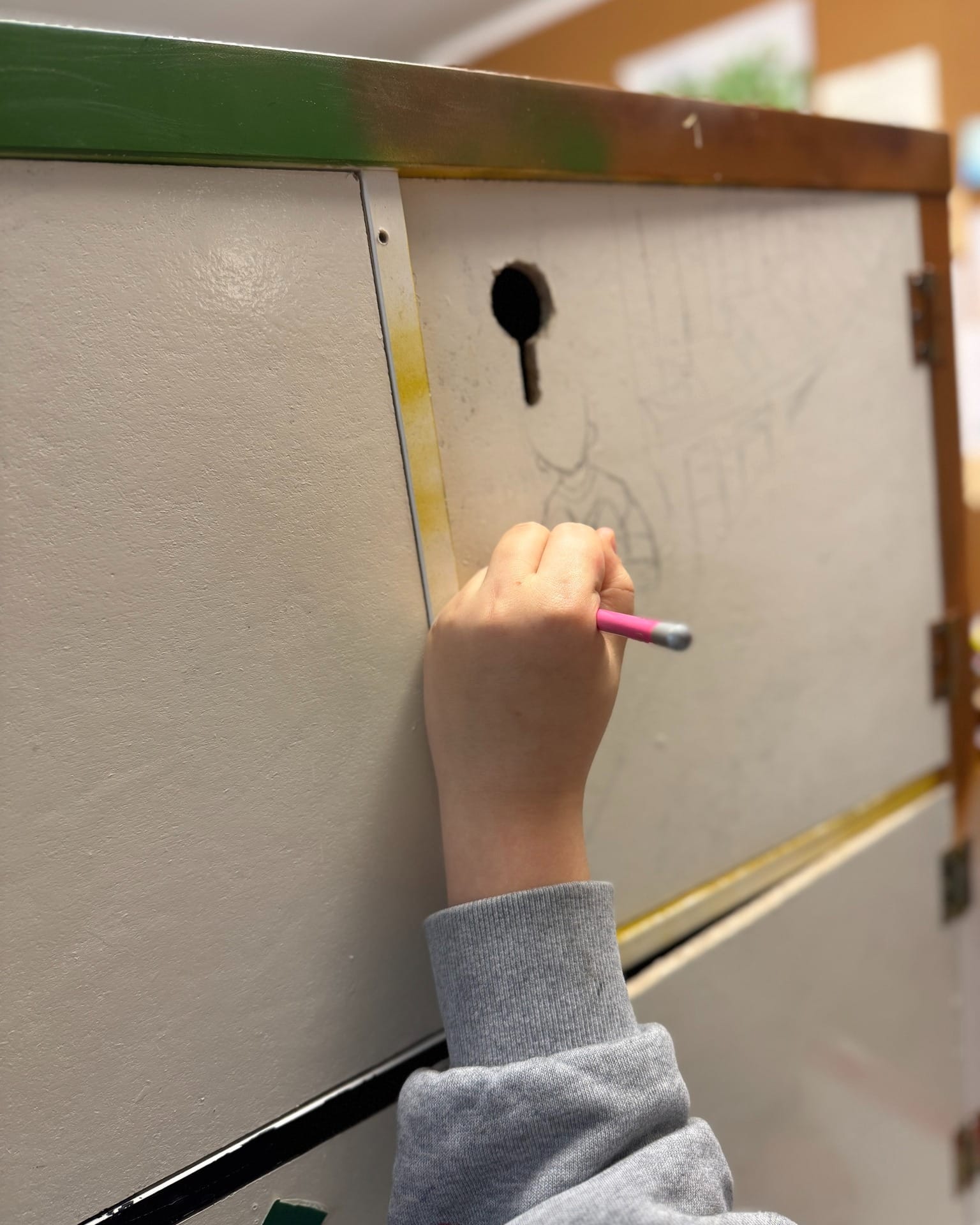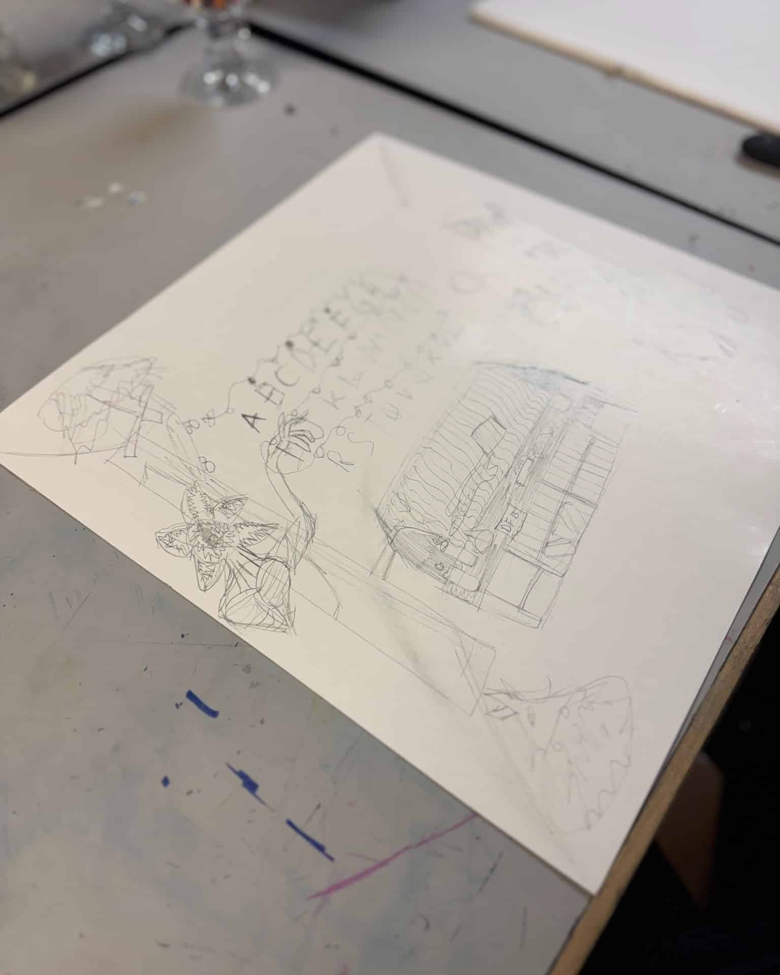 Bei unserem Projekt ging es zuerst um die Ideensammlung: Die Jugendlichen entwickelten zum Thema passende Skizzen und Motive, die dann Schritt für Schritt auf den Escape Raum übertragen wurden.