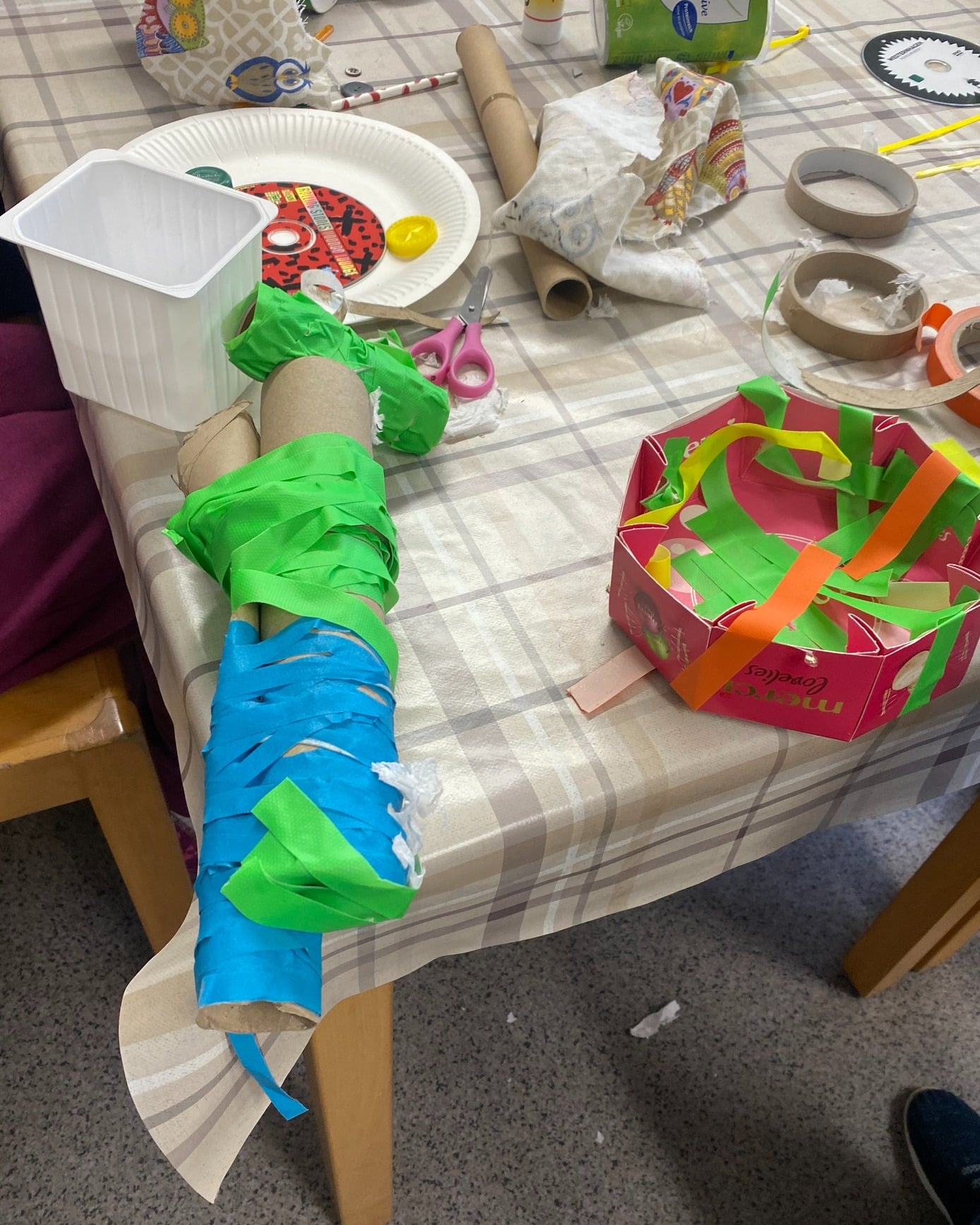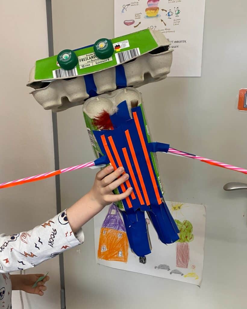 In diesem Termin drehte sich alles um das Erkunden von Recyclingmaterialien und das freie Experimentieren.