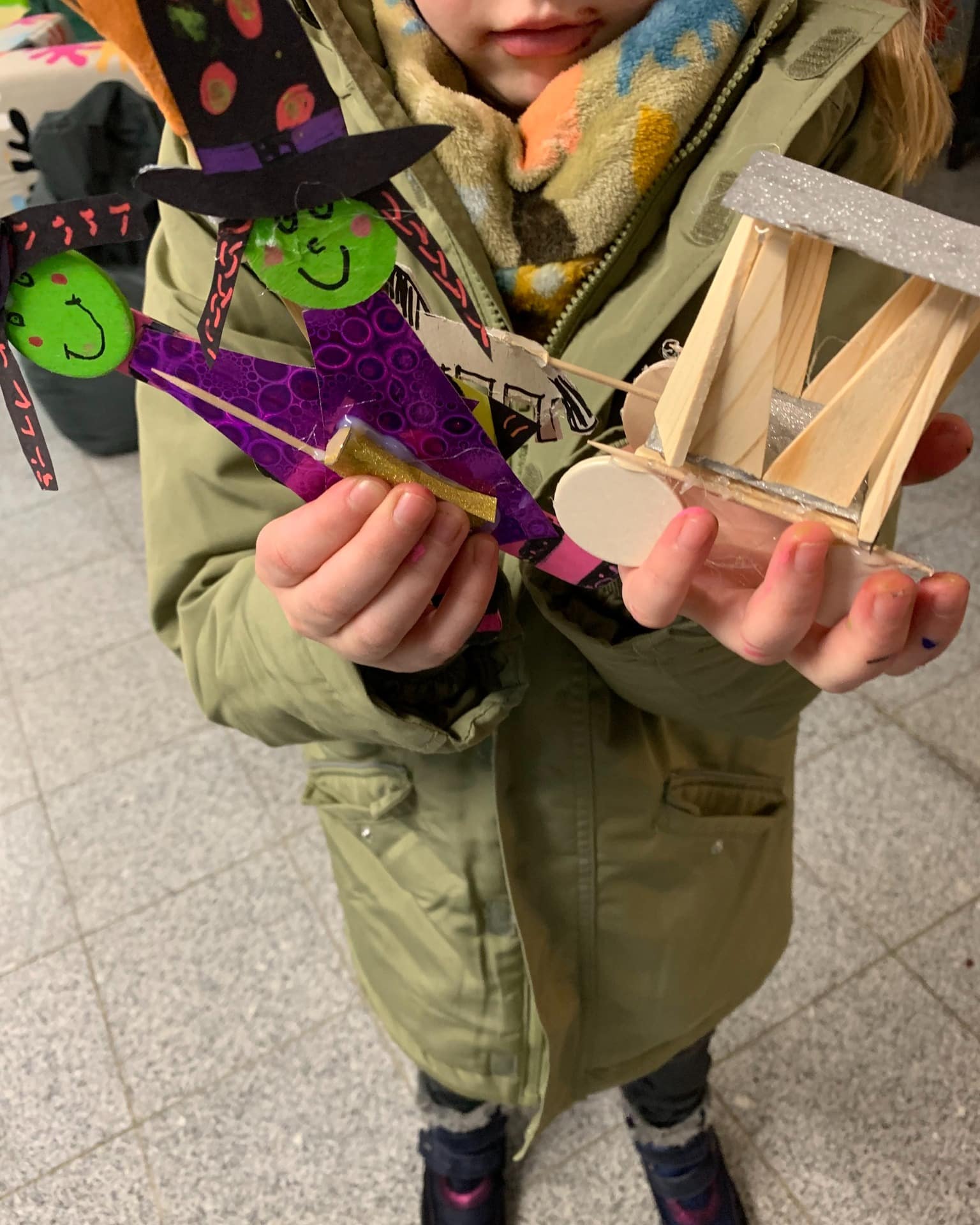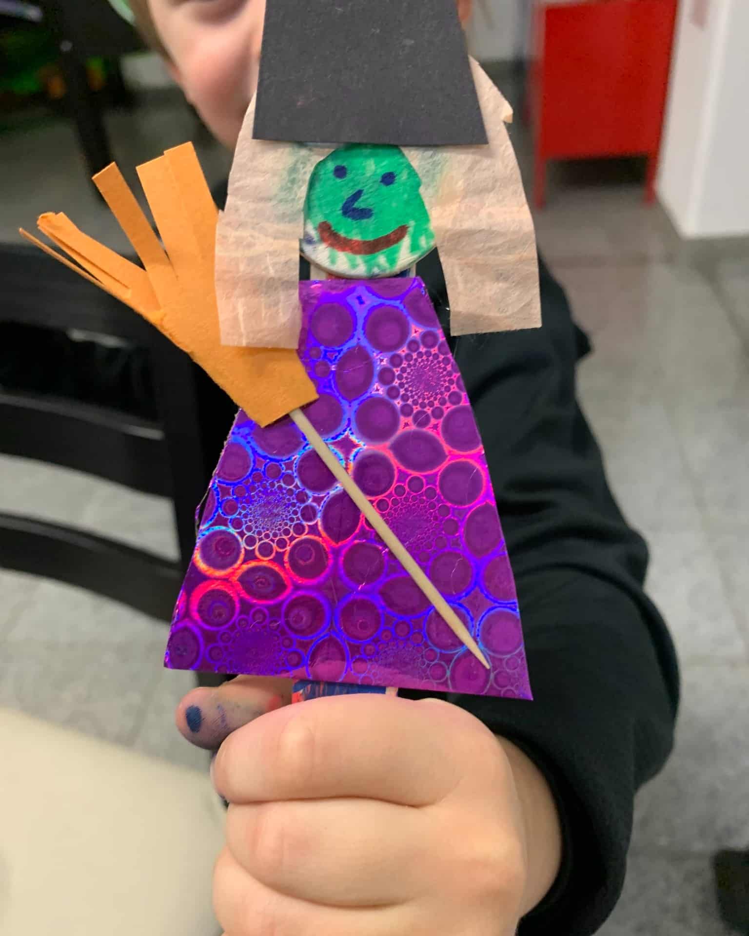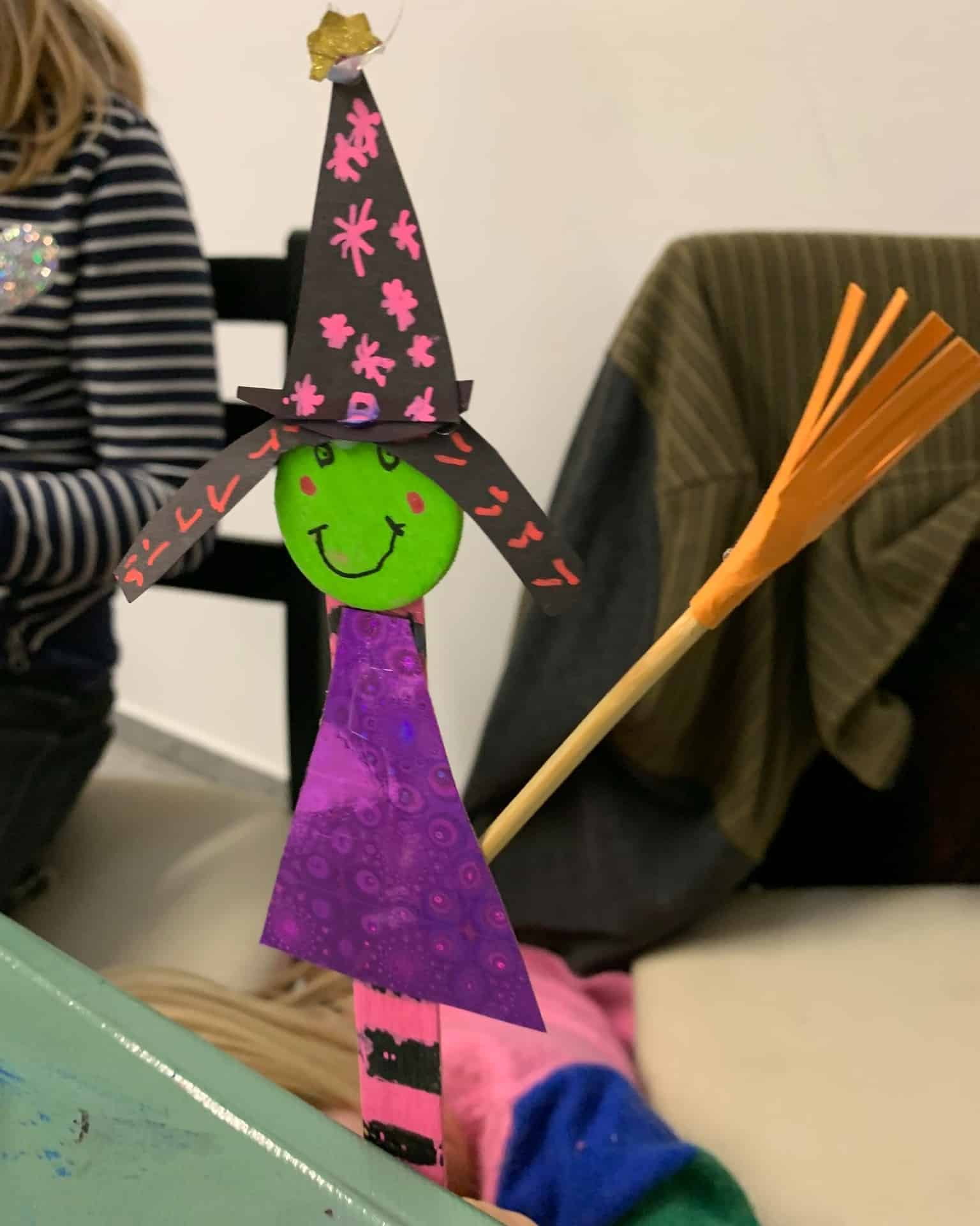 Fantasievolle Hexis entstanden bei der kreativen Spielerei mit Pappe, Papier und Farbe.