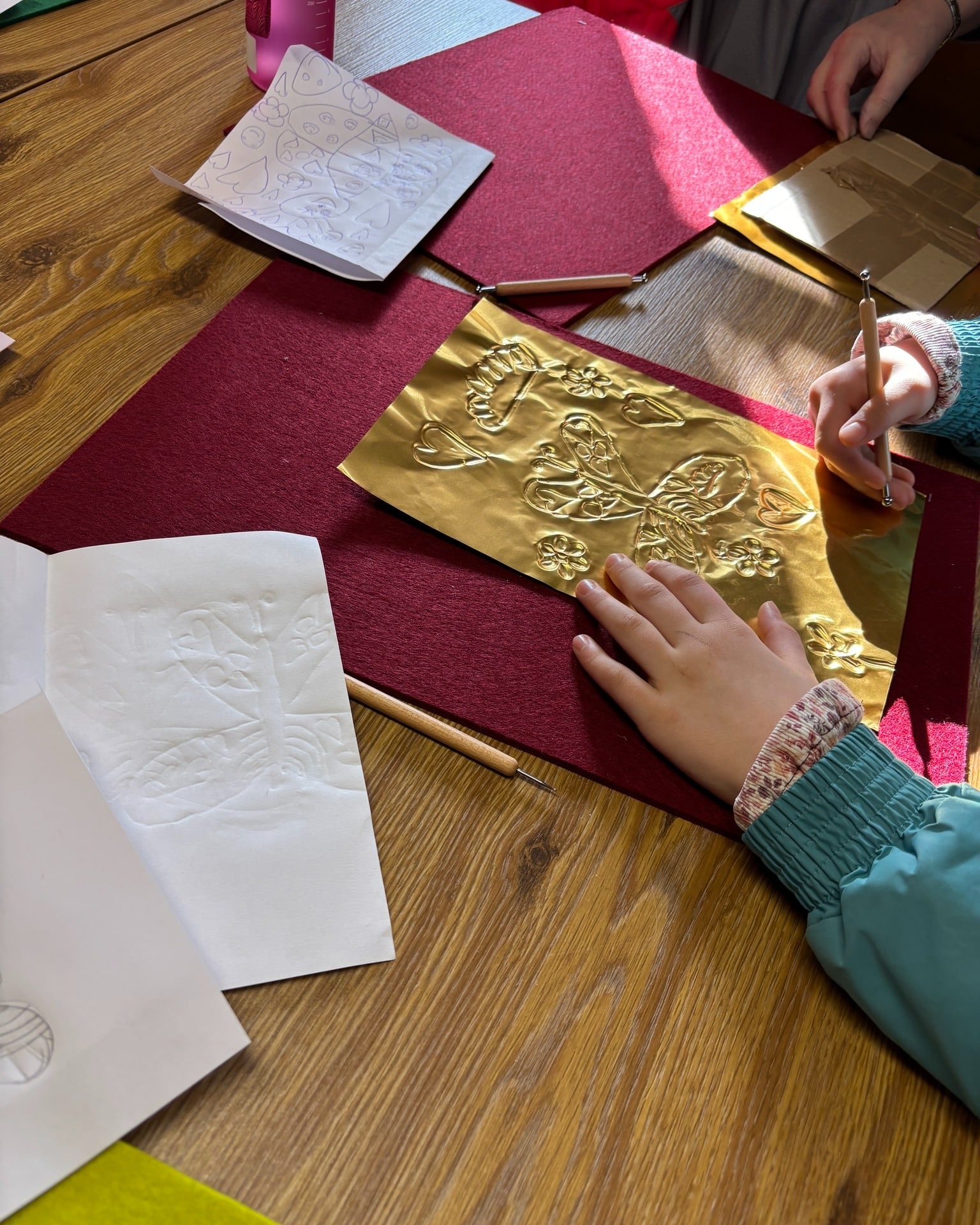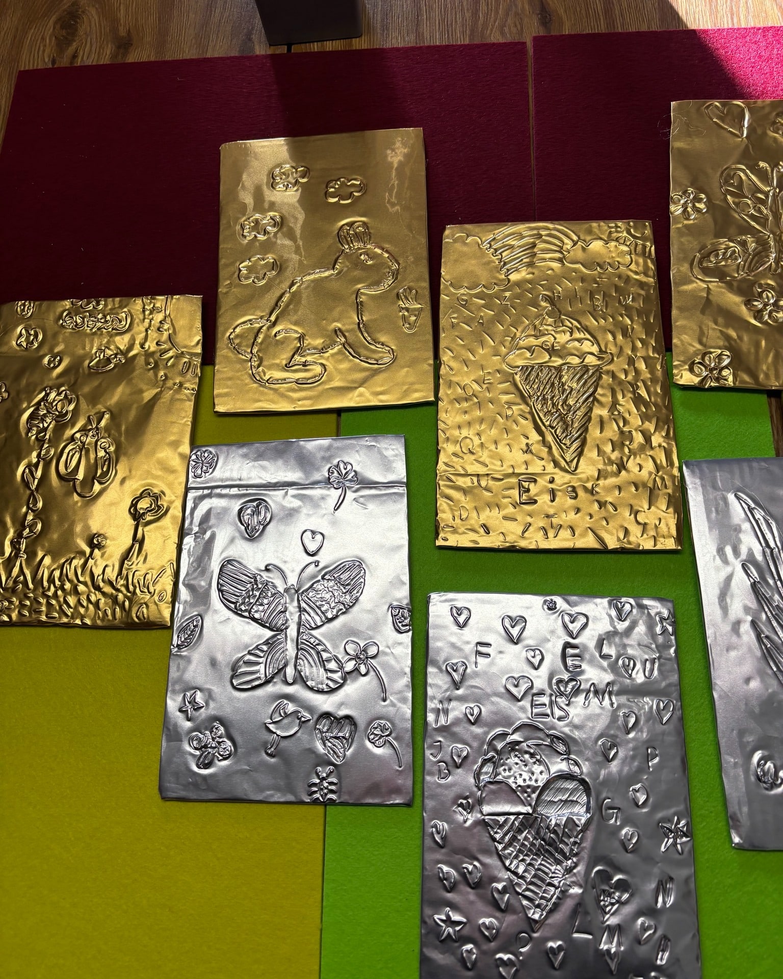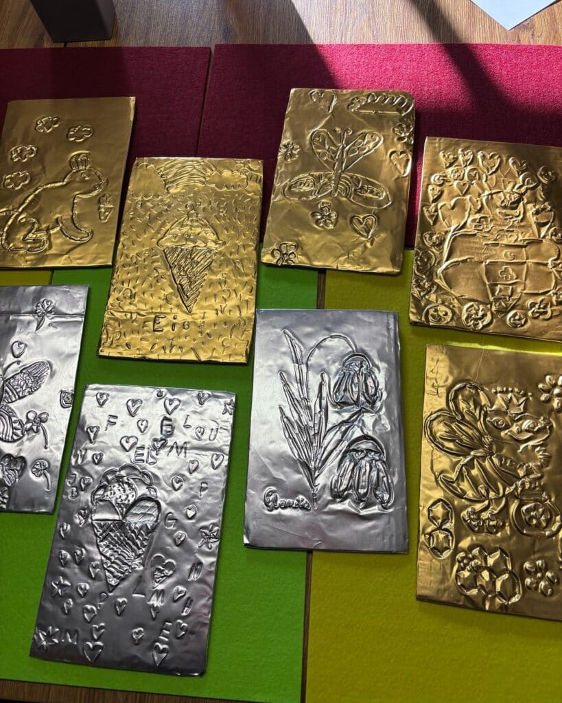 In Thiersheim beim AWO Kantorat haben die Kinder Metalldruck-Bilder gestaltet. Viele waren begeistert: