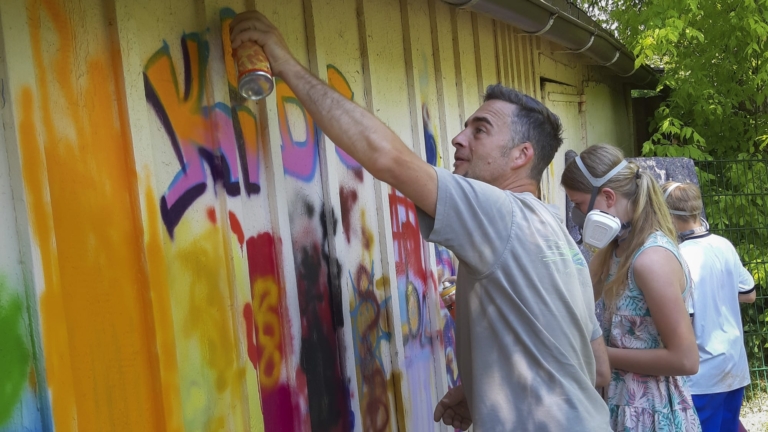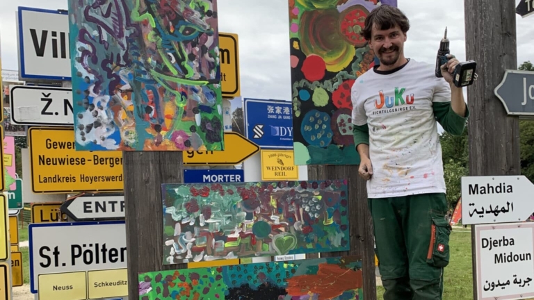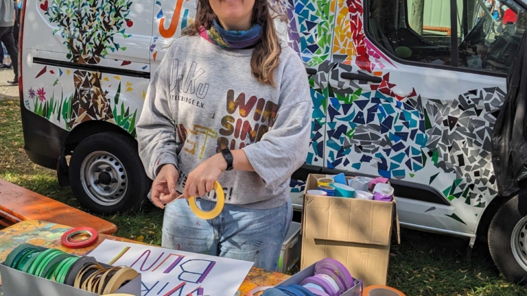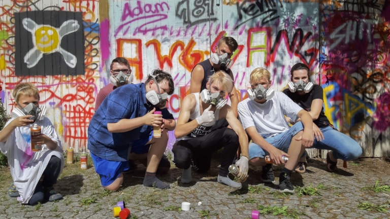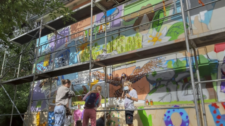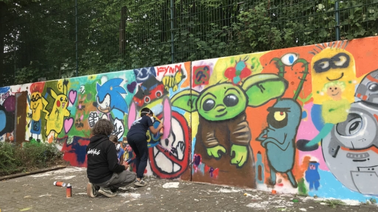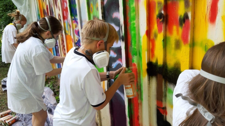 Wir arbeiten mit freien Künstlerinnen und Künstlern zusammen. Viele unterschiedliche Techniken, Materialien und Erfahrungen ergeben im Zusammenspiel mit den Wünschen der Teilnehmenden und den Voraussetzungen vor Ort immer wieder neue Kunst!