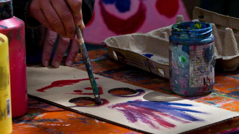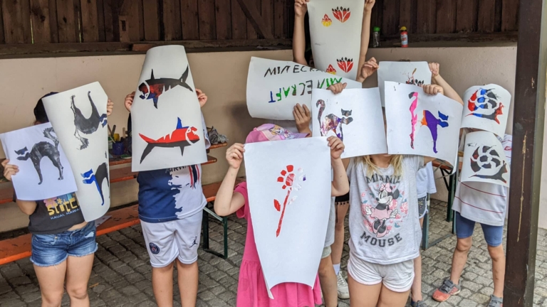 In unseren Workshops bemalen wir Postkarten in Aquarelltechnik oder gestalten ganze Fassaden mit Graffiti. Wir formen Skulpturen aus Ton oder bauen große Installationen im öffentlichen Raum. Wir verarbeiten Müll zu Recycling-Kunst, spielen selbst erfundene Theaterstücke und erkunden die kreativen Möglichkeiten der Virtuellen Realität.